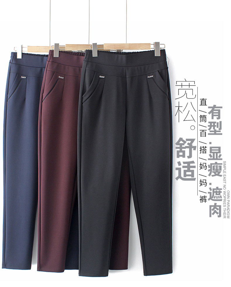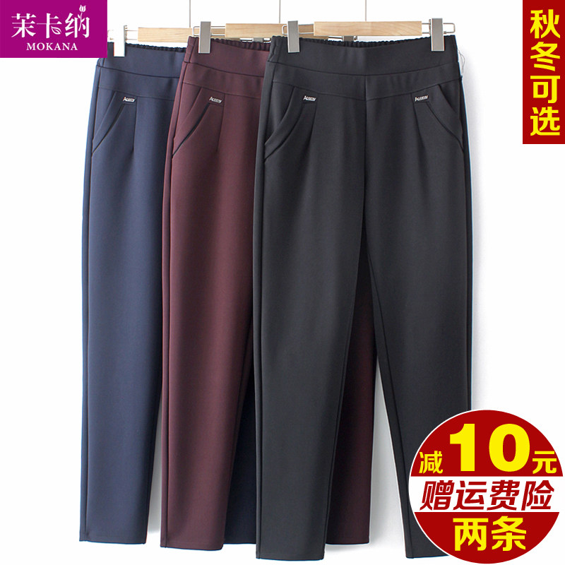 Осенние утепленные демисезонные штаны для матери, для среднего возраста, высокая талия, свободный прямой крой