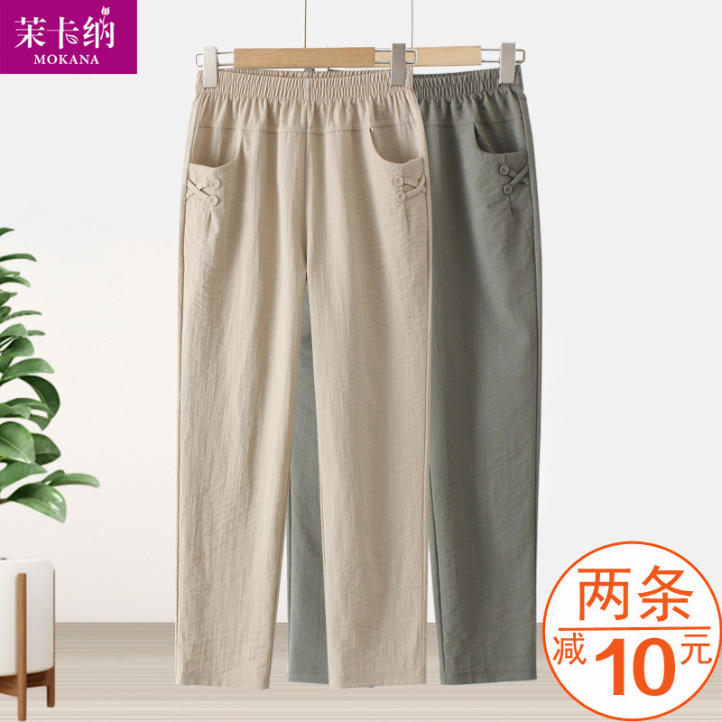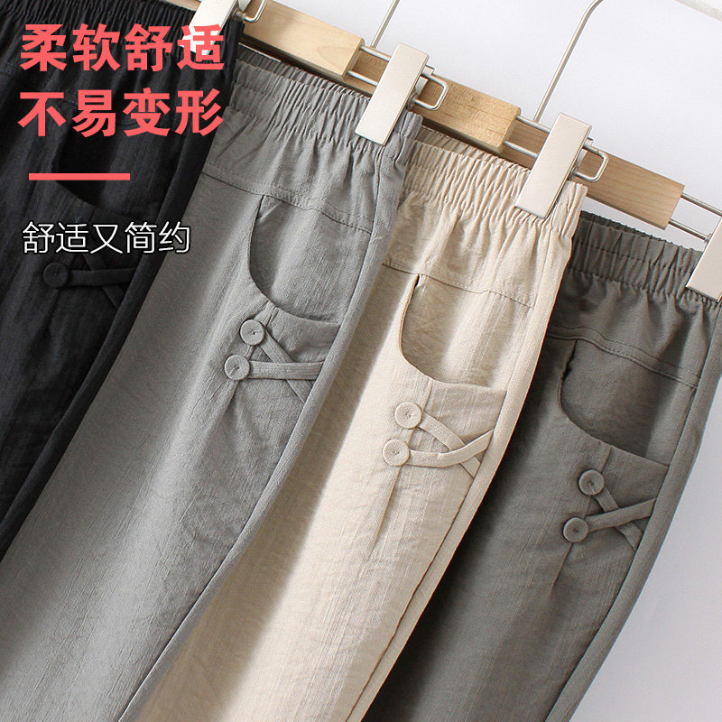 Летние тонкие штаны для матери, для среднего возраста, свободный прямой крой