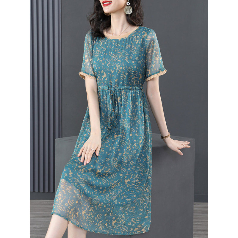 Летняя одежда, платье с коротким рукавом, шифоновый корсет, коллекция 2022, для среднего возраста