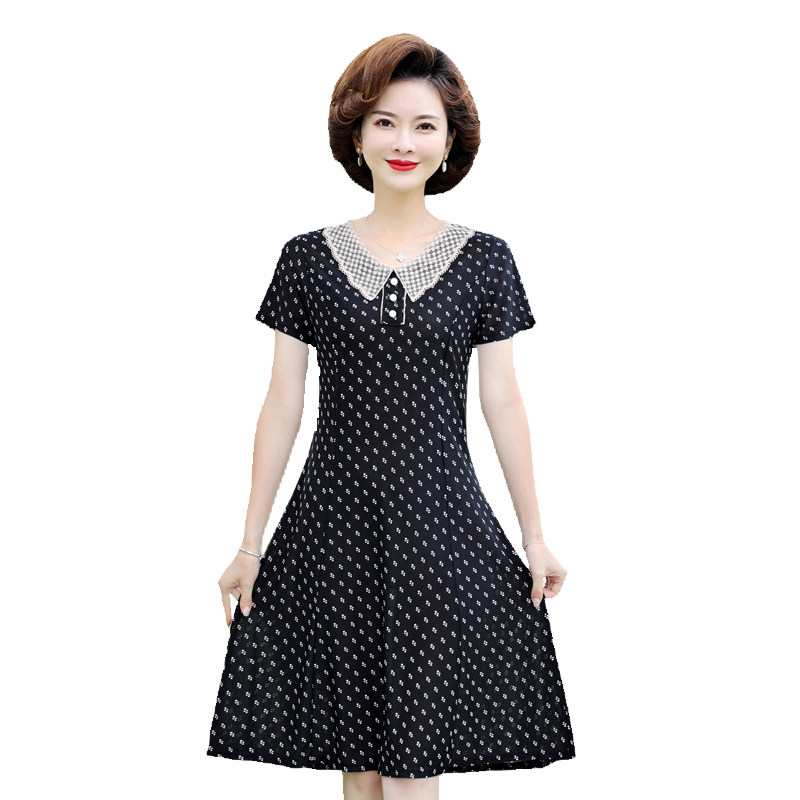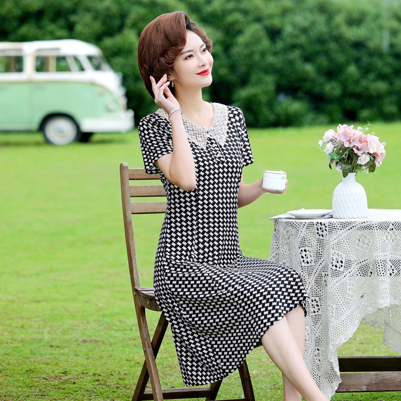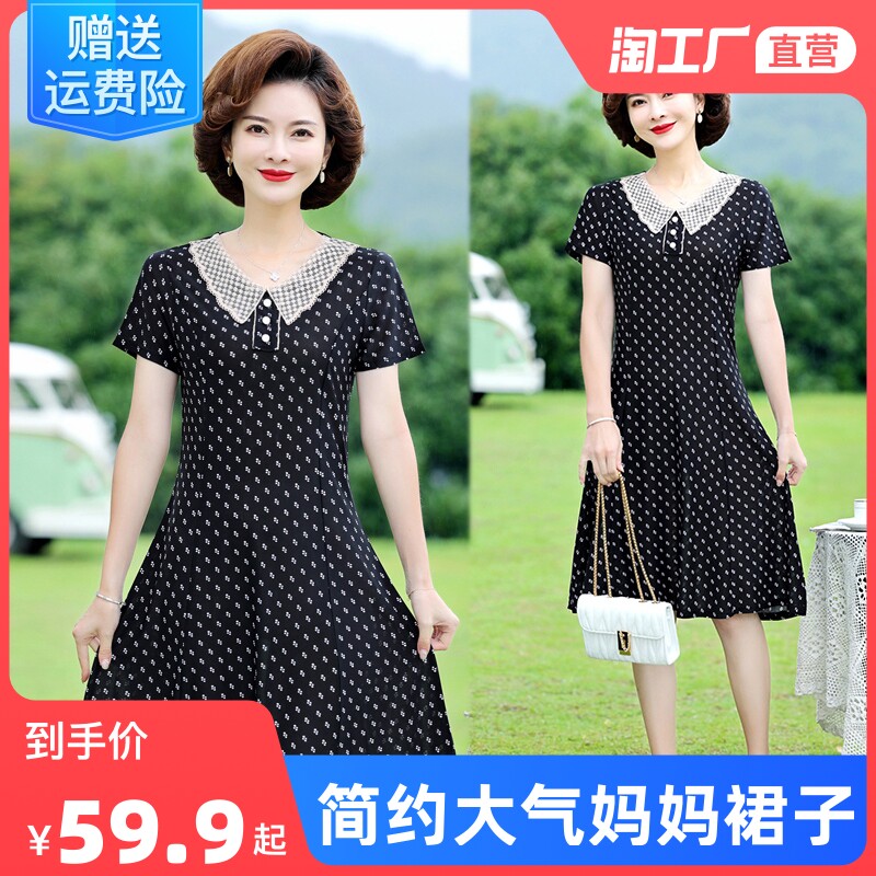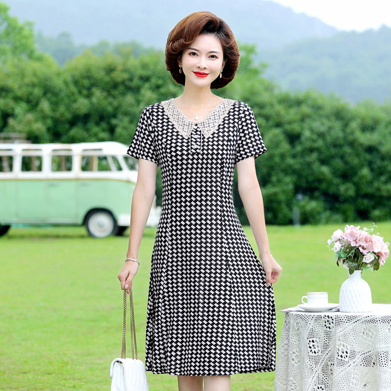 Летнее платье для матери, летняя летняя одежда, шифоновая юбка, для среднего возраста, в западном стиле, короткий рукав