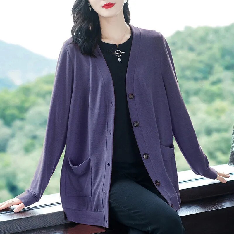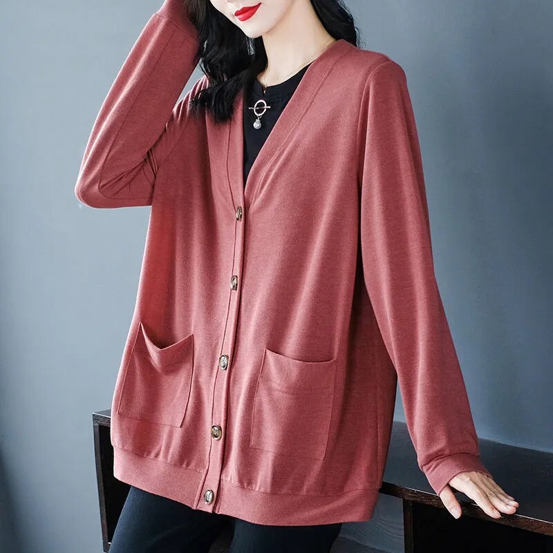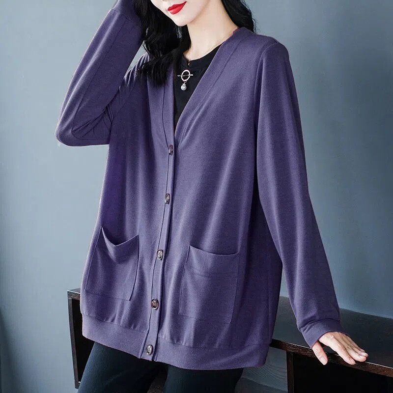 Кардиган, осенняя куртка, длинная толстовка, V-образный вырез, оверсайз, большой размер, средней длины