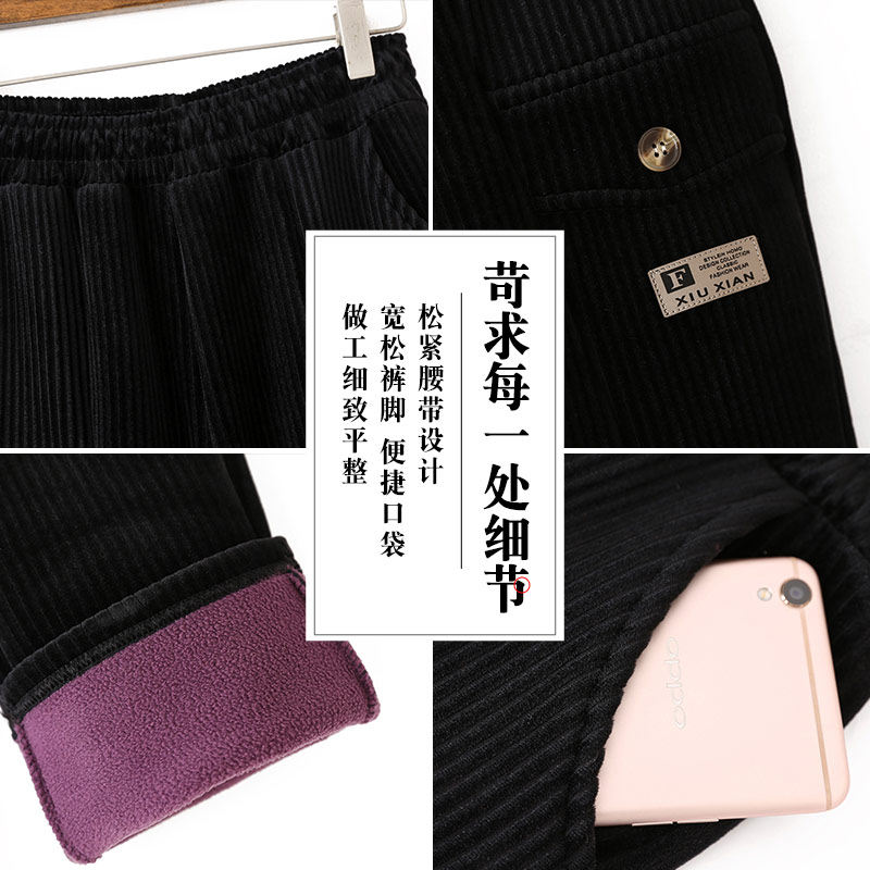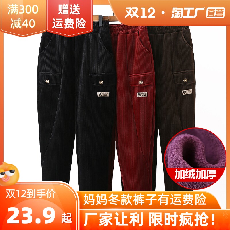 Штаны для матери, вельветовый осенний утепленный пуховик, в западном стиле, для среднего возраста, свободный прямой крой