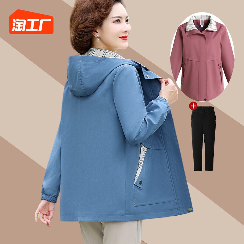 Осенняя короткая куртка для матери, осенний плащ с капюшоном, коллекция 2023, в западном стиле, для среднего возраста