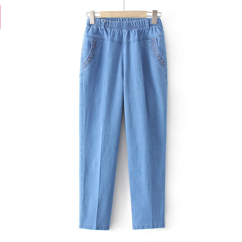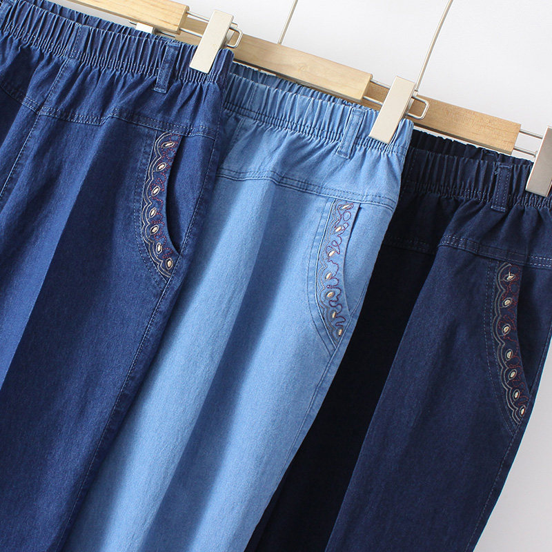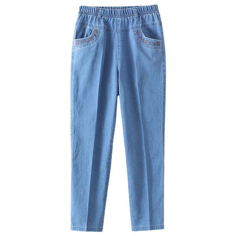 Тонкие джинсы для матери, легкие и тонкие штаны для отдыха, для среднего возраста, высокая талия, свободный прямой крой