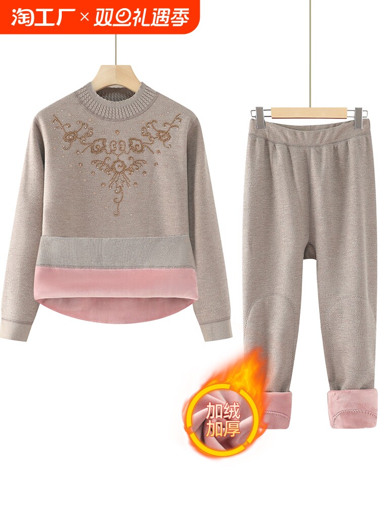 Удерживающее тепло утепленное нижнее белье для матери, пуховик для пожилых людей, комплект, осеннее термобелье, для среднего возраста