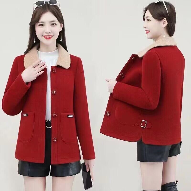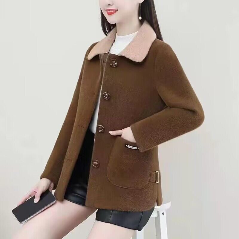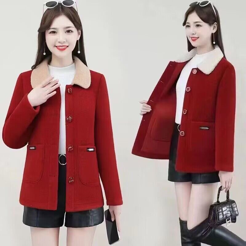 Пуховик для матери, бархатная короткая флисовая шерстяная куртка, увеличенная толщина, в западном стиле, для среднего возраста