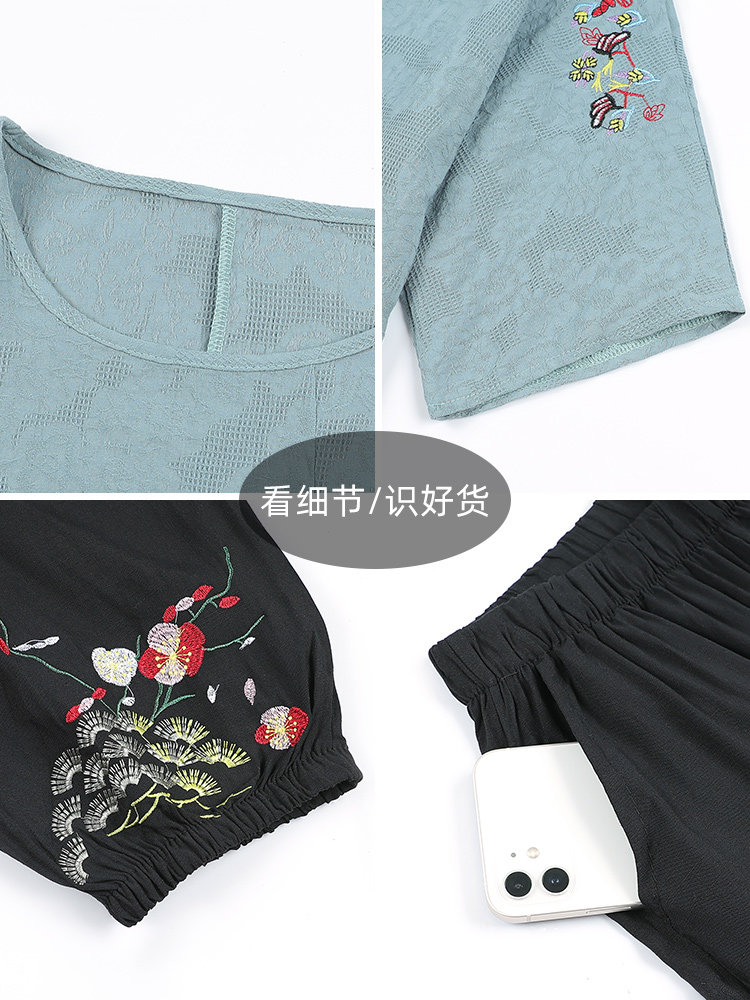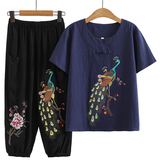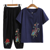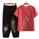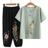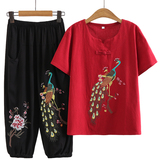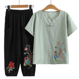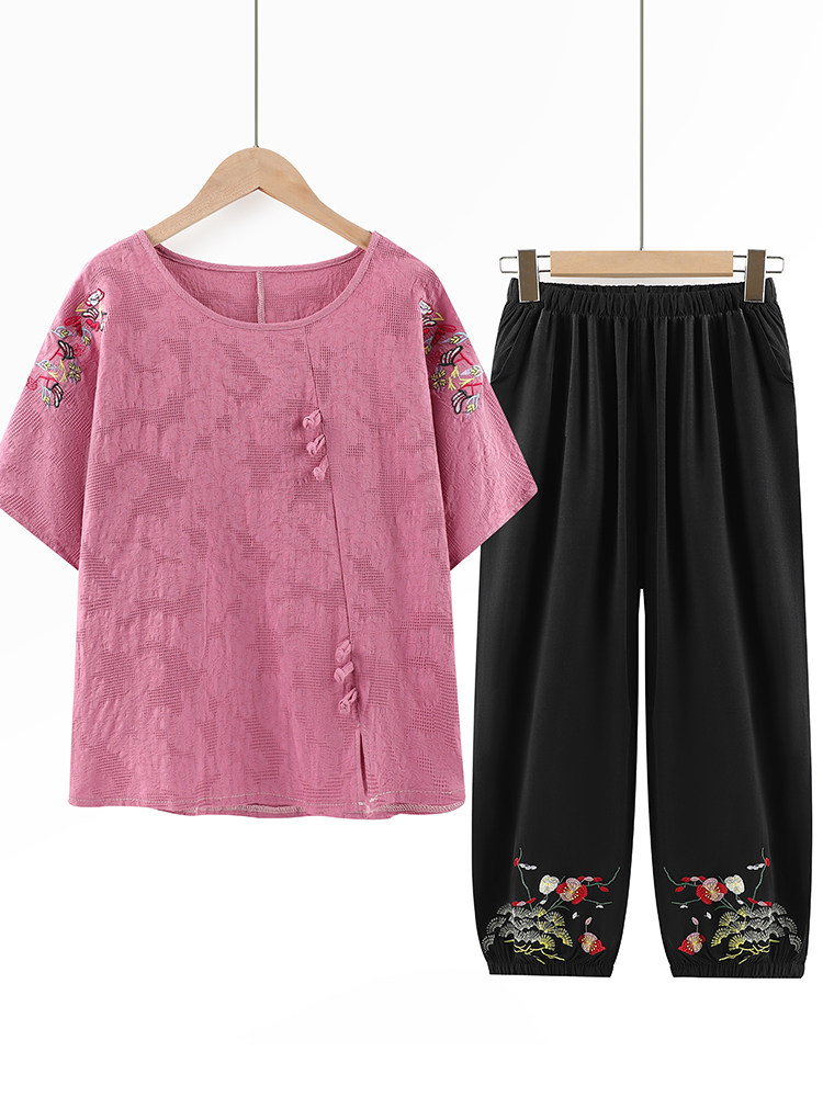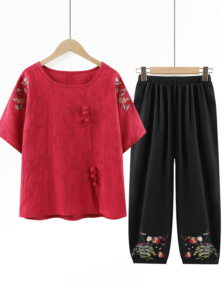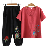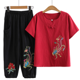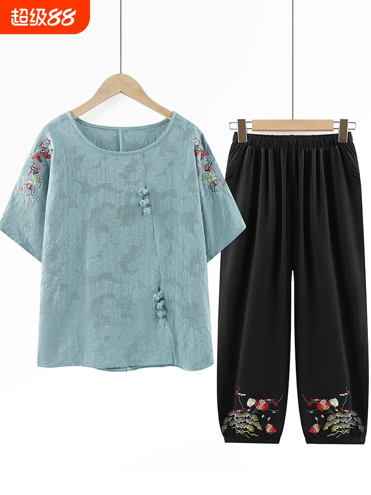 Летняя одежда для пожилых людей для матери, комплект, летняя футболка, для среднего возраста, из хлопка и льна, короткий рукав, большой размер