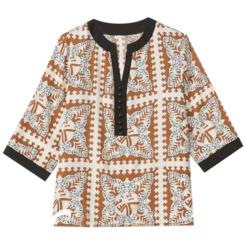 Летняя футболка для матери, ретро шифоновая модная летняя одежда, в западном стиле, для среднего возраста, шифоновая с принтом