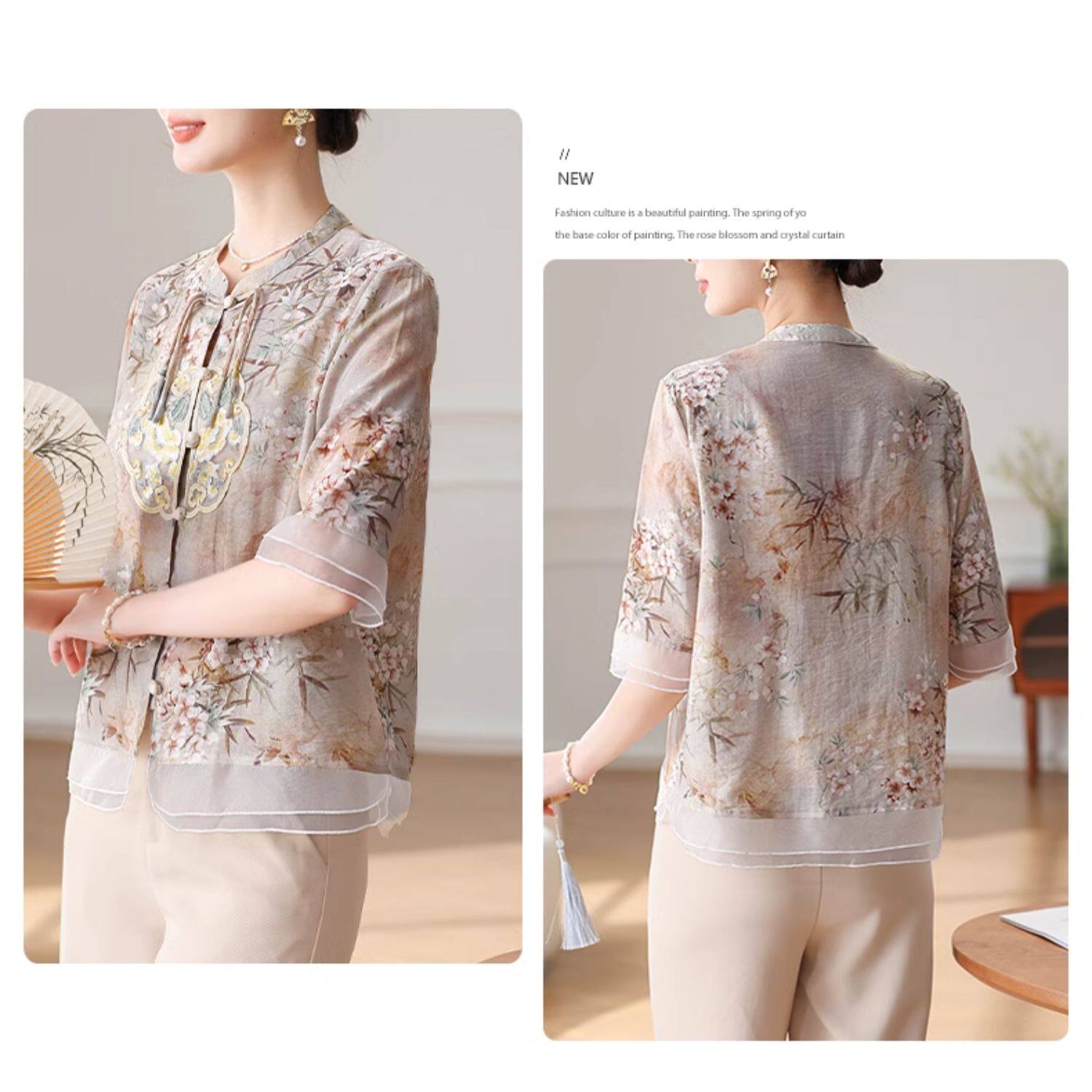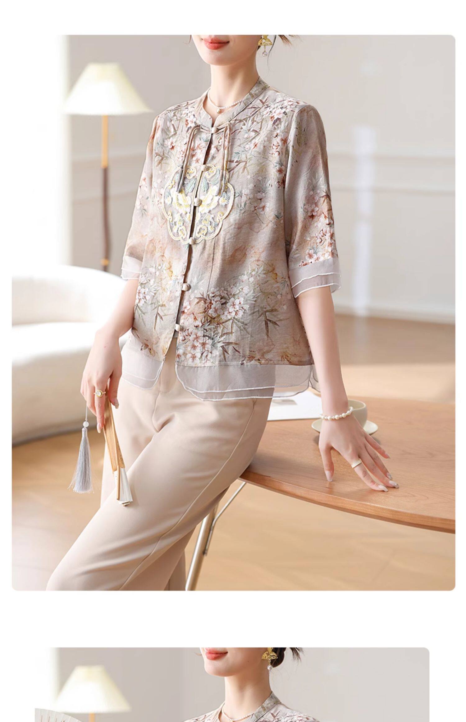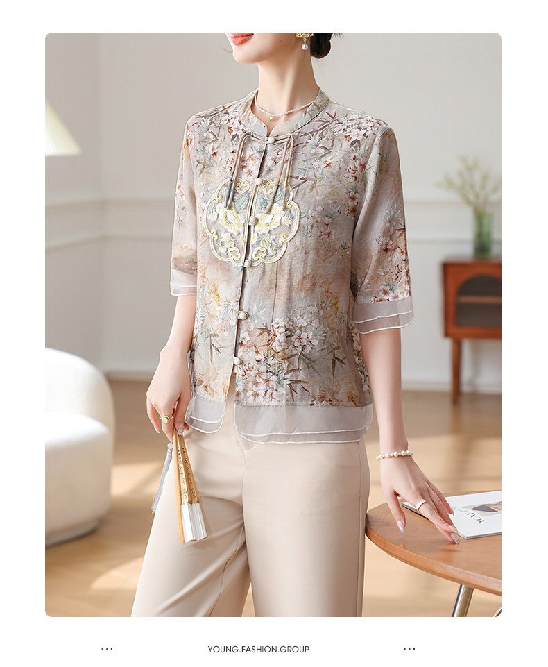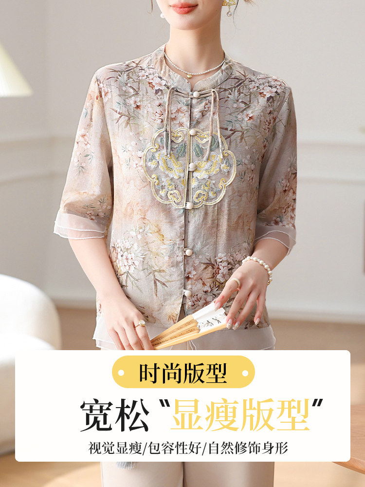 Летняя футболка с коротким рукавом на день матери, китайский стиль, для среднего возраста, 50 лет