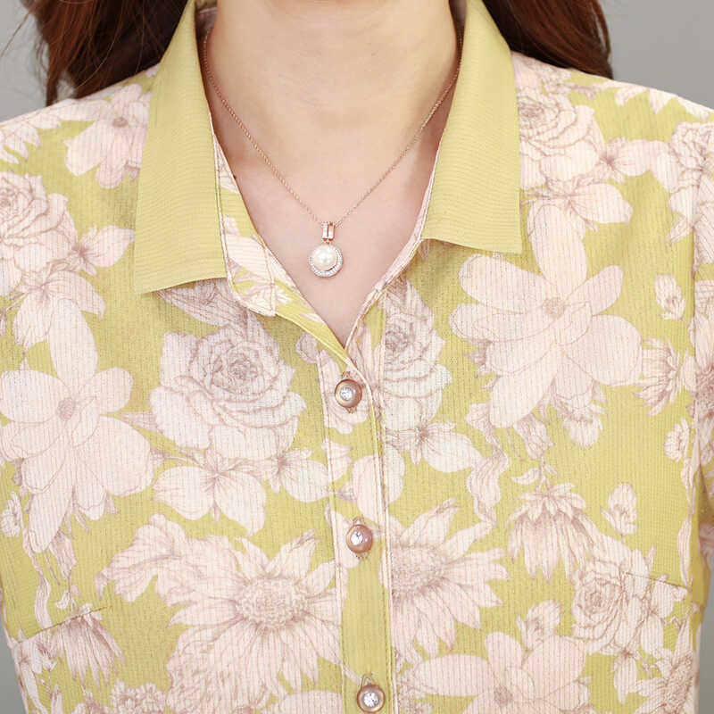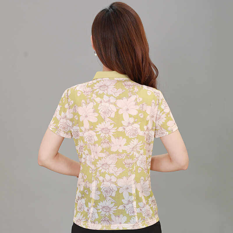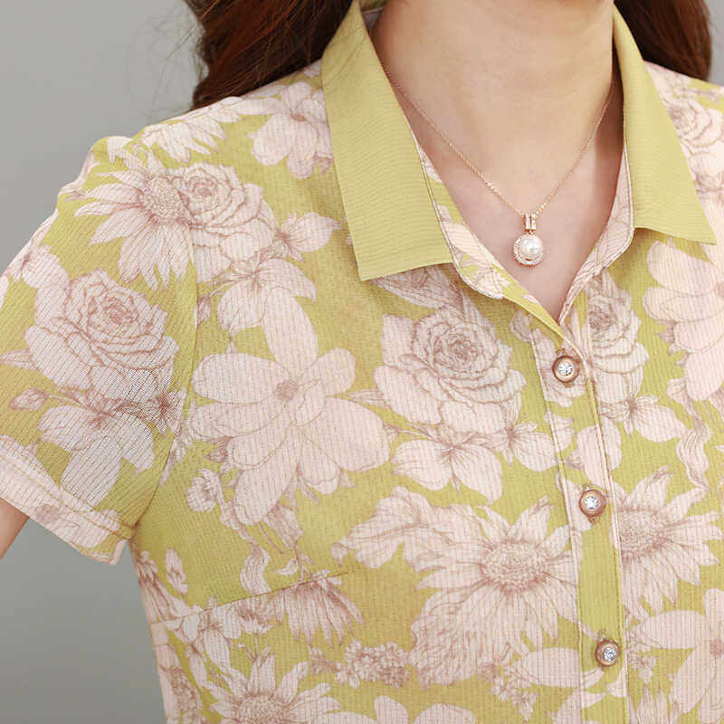 雪琳儿 Летняя ретро рубашка для матери, для среднего возраста, короткий рукав, цветочный принт