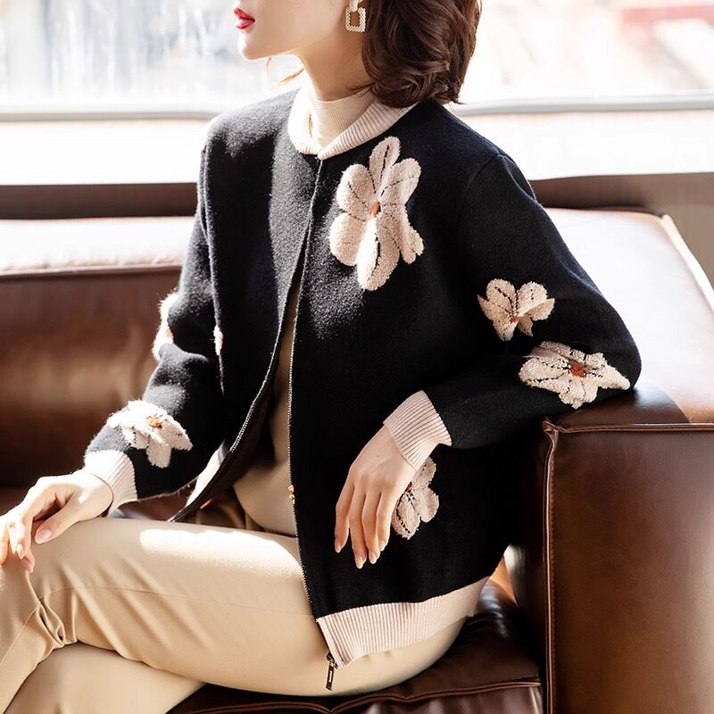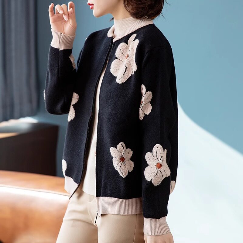 Весенняя трикотажная короткая куртка для матери, подходит для подростков, для среднего возраста, в западном стиле