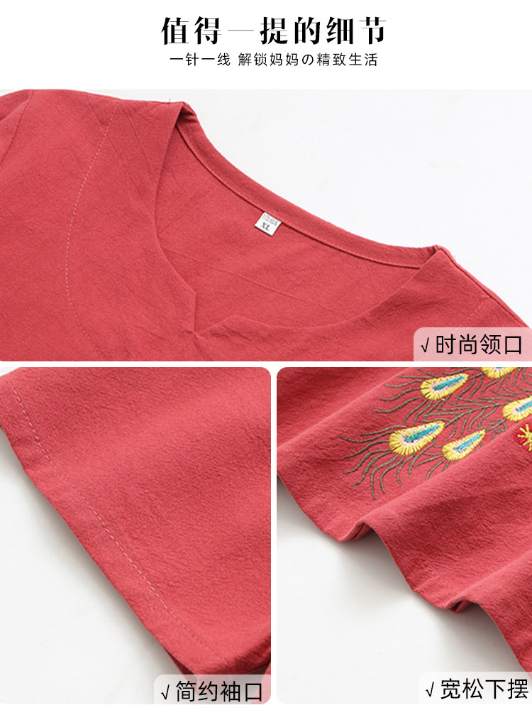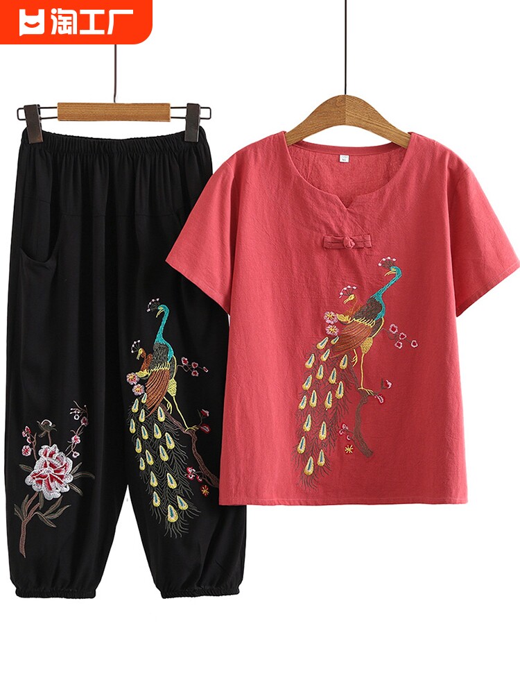 Летняя одежда для пожилых людей для матери, хлопковый комплект, футболка, для среднего возраста, короткий рукав, из хлопка и льна, в западном стиле