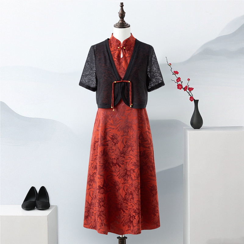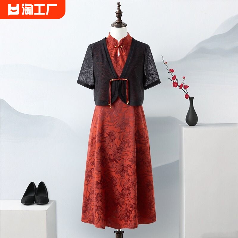 Модная летняя одежда для матери, длинное платье, комплект, юбка для пожилых людей, китайский стиль, средней длины, для среднего возраста
