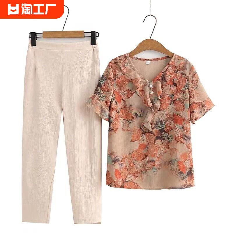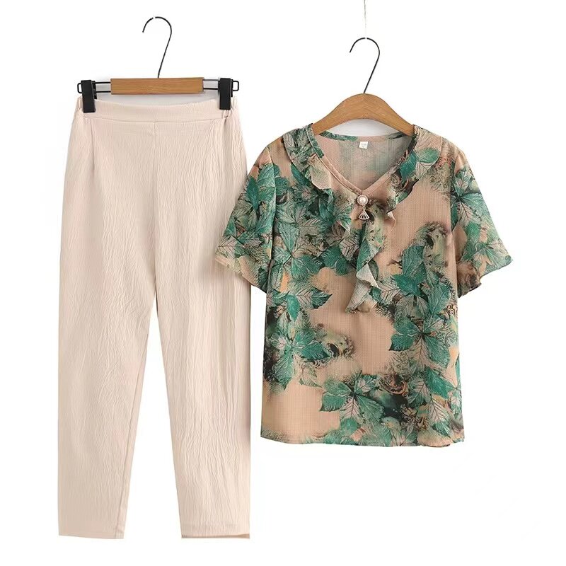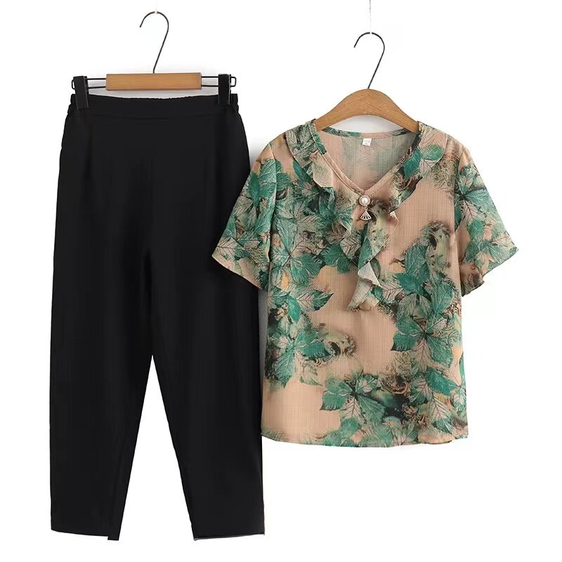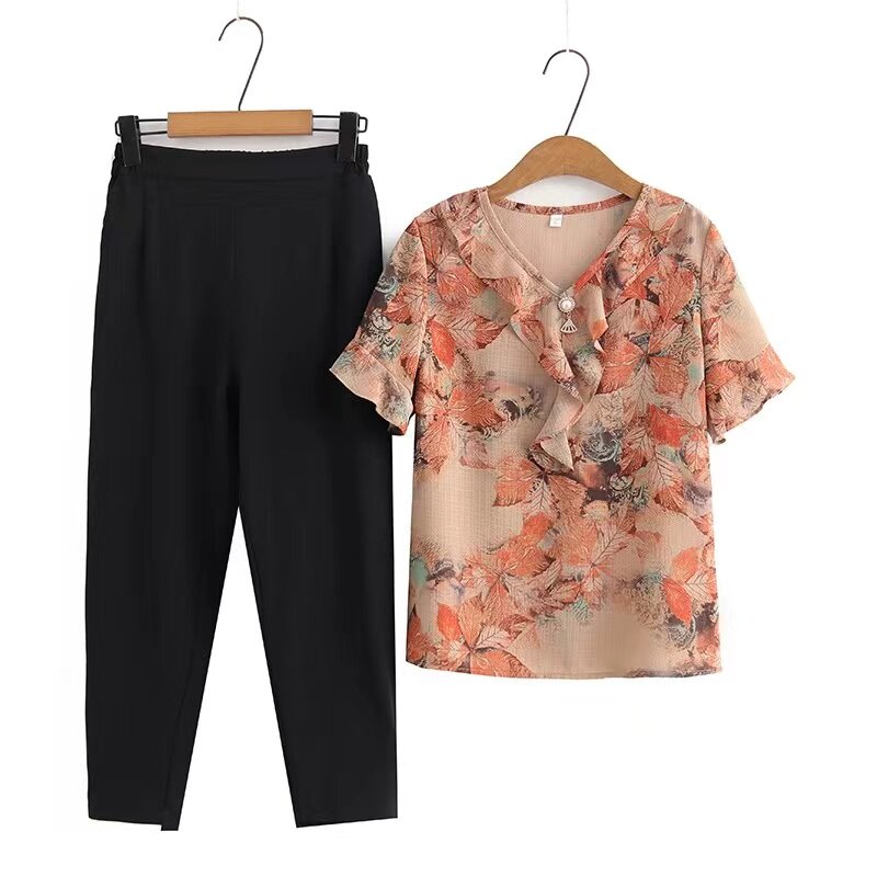 Летняя одежда, нарукавники, шифоновый модный комплект, короткий рукав, в западном стиле, большой размер