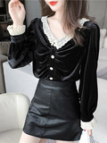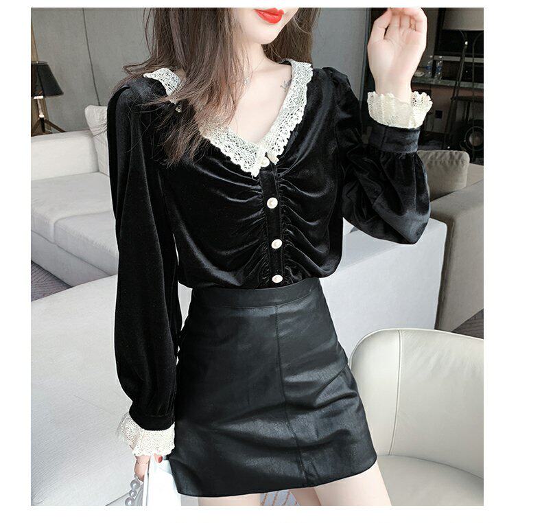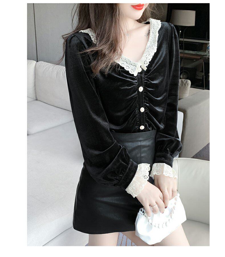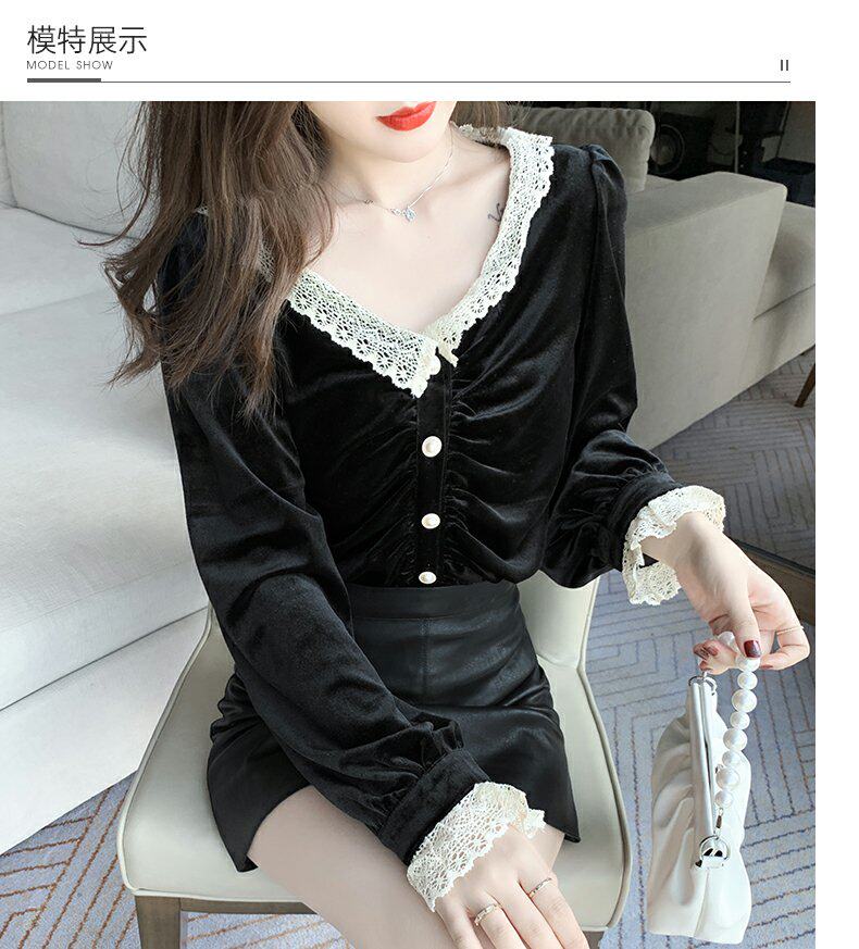 巴酷森 Утепленный демисезонный бархатный лонгслив, коллекция 2021, V-образный вырез