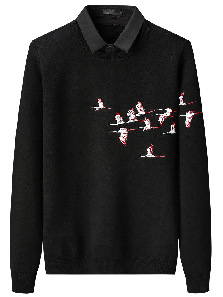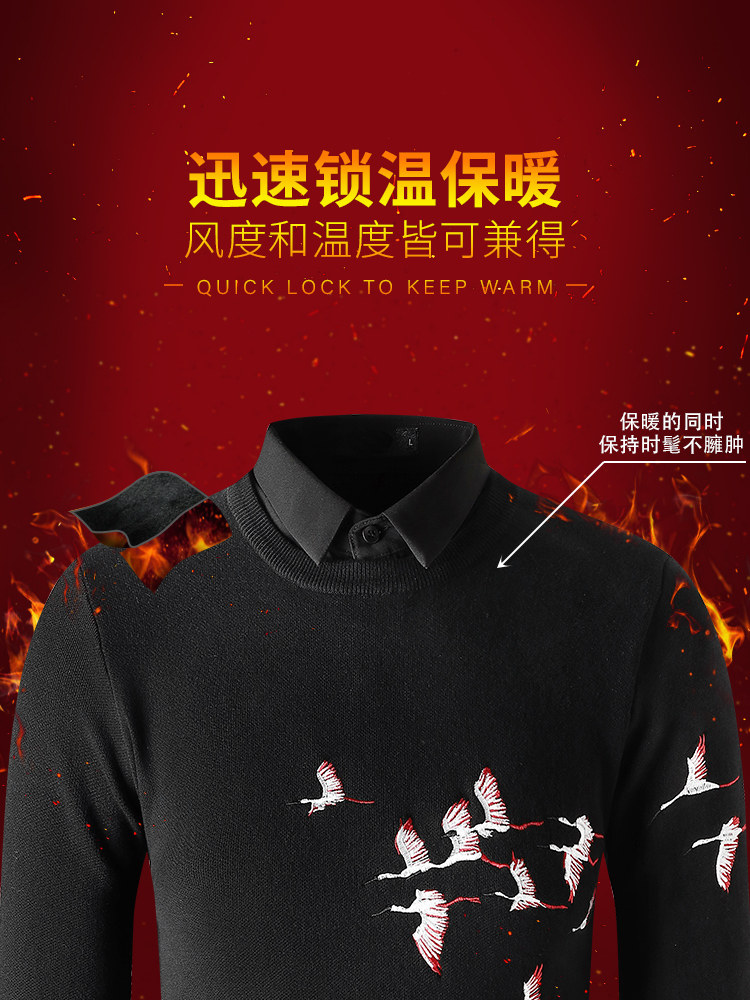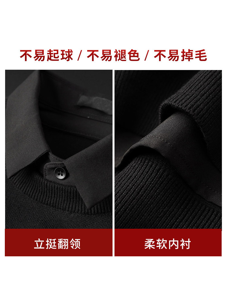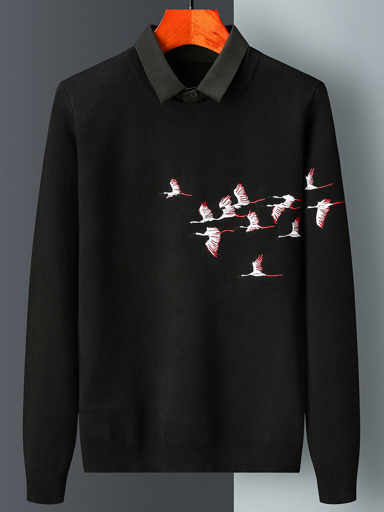 Демисезонная модная рубашка, комплект, свитер, фальшивый воротник, лонгслив, галстук, легкий роскошный стиль, с вышивкой