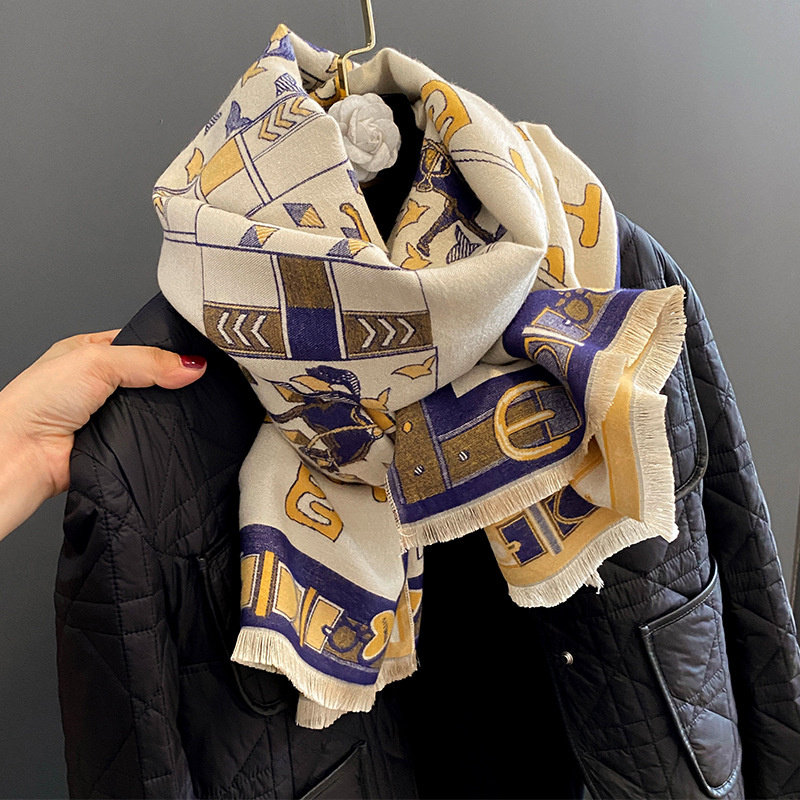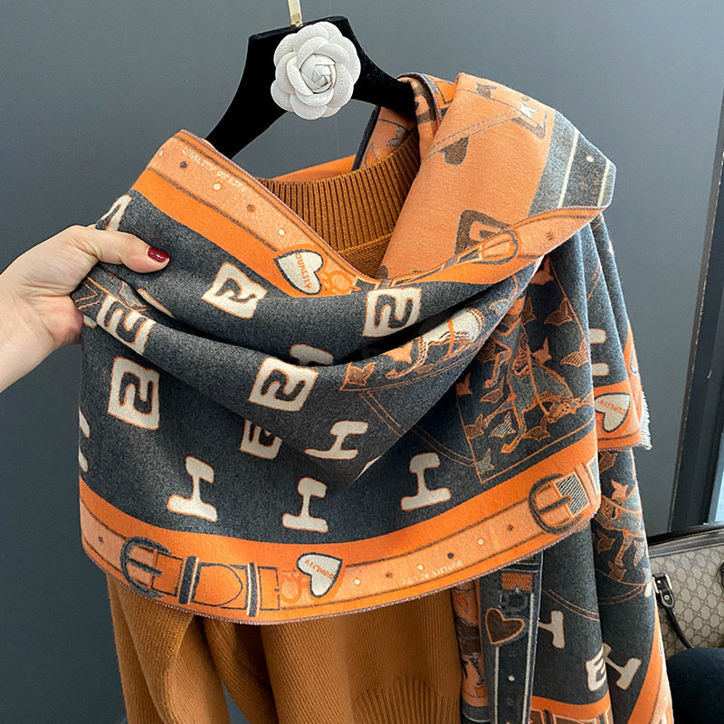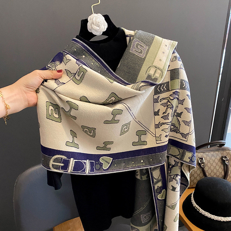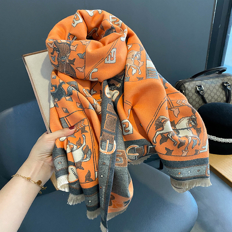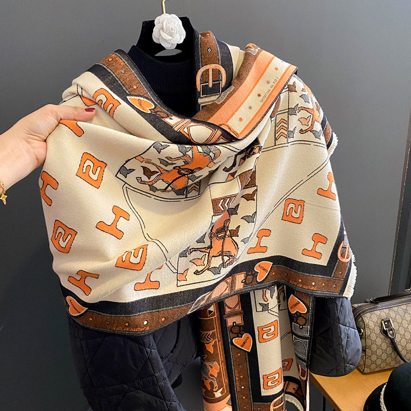 Кашемировый шарф, удерживающая тепло ретро двусторонная карета, накидка, Франция, увеличенная толщина