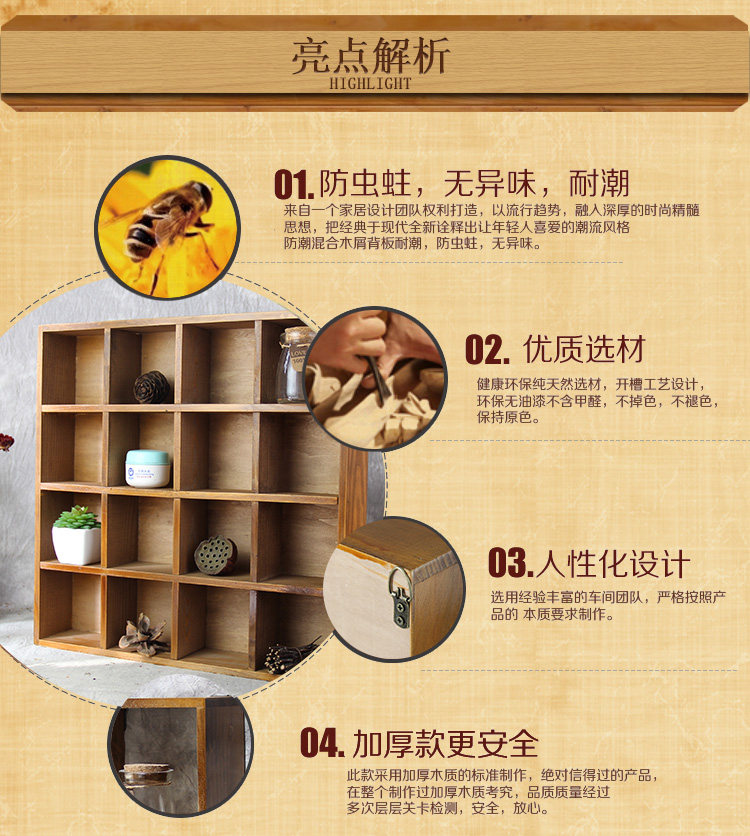 Zakka Multi -Functional Retro Wood Plaid Cosmetics Cosmetics Heress Herse Office Herse Hore Sceanted