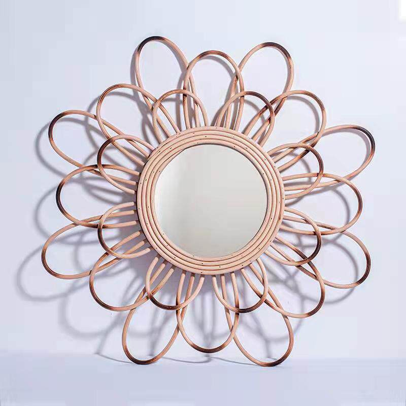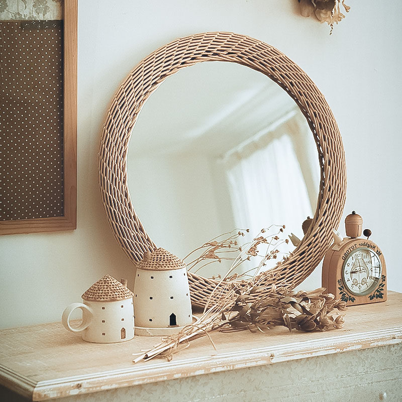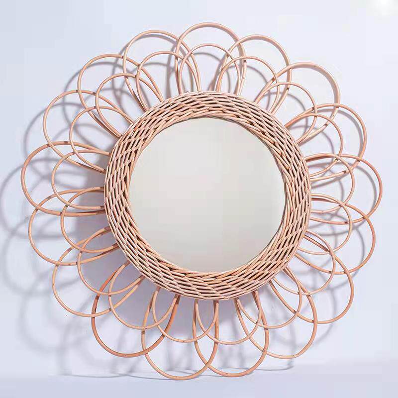 Скандинавские настенные украшения, подвесное зеркало, плетеное декоративное зеркало, скандинавское зеркало из ротанга, ручная работа, украшение стены B & B, фотография