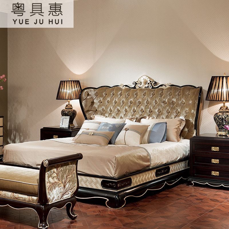 粤具惠 Классическая мебель для спальни из натурального дерева, вилла для кровати