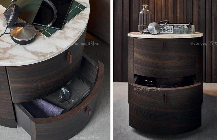 Столога для прикроватного, мастерство вручную, дизайн круглый, и это еще более практично. Два ящика с твердым деревом+итальянскими скрытыми дорожными путями, простое мастерство, практичность.Недавно обновленная все -деревянная деревянная панель с деревянной деревянной панелью внутри ящика, нижняя часть 9 -мм ствола является толстой и долговечной.