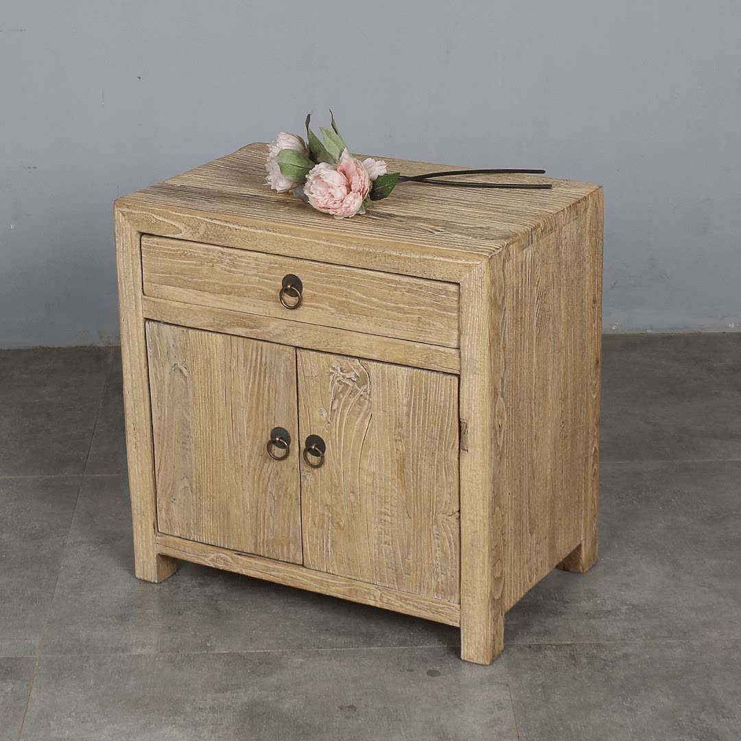 Laoocoma Прикроватный шкаф Новый китайский стиль одно -деревянный двухуровневый маленький боковой шкаф ретро -корнинер