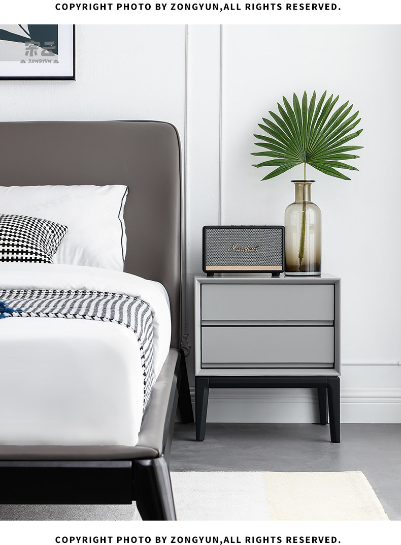 Итальянский минимальный прикроватный шкаф Простой современный твердый дерево без скандинавской инсталляции серая ящик для спальни для хранения спальни прикроватный шкаф