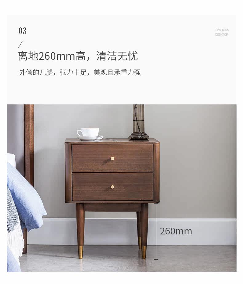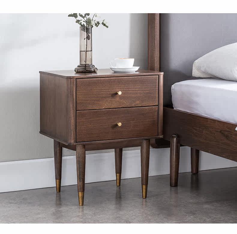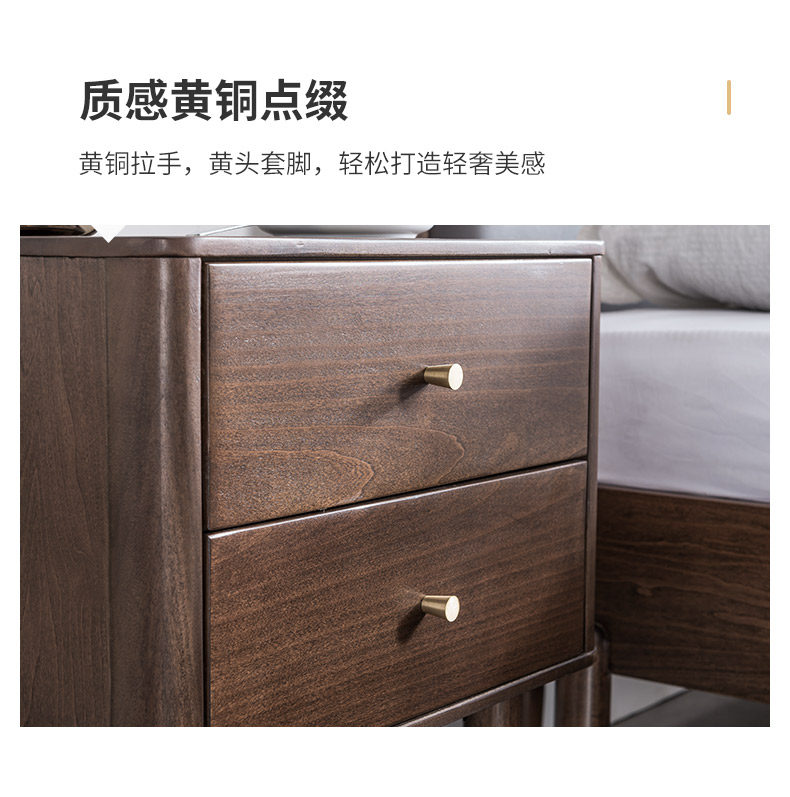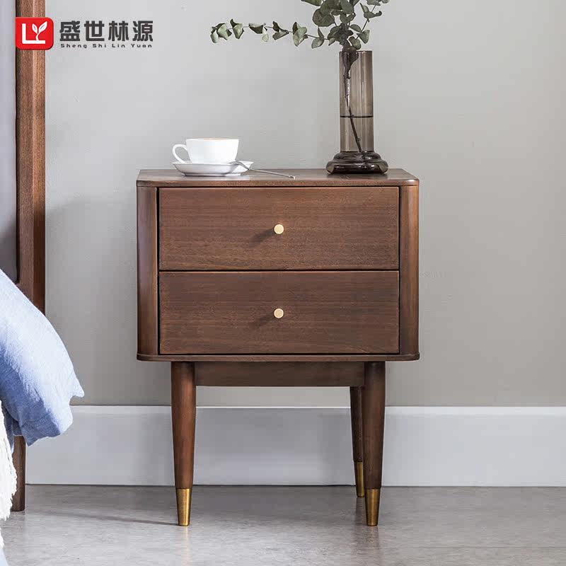 盛世林源 Сплошная древесная прикроватная простота, современный северный легкий роскошный стиль прикроватного шкафа, ореховый деревянный шкаф