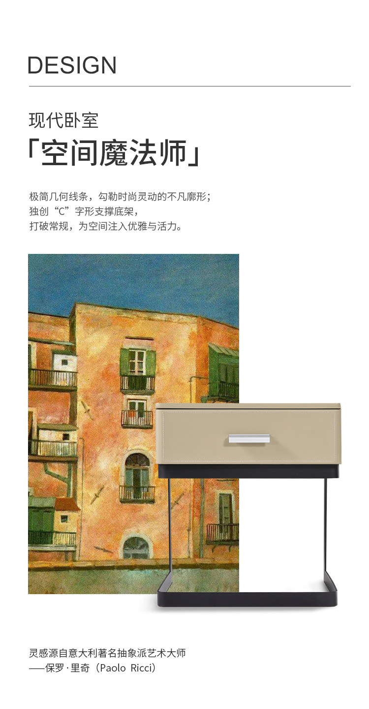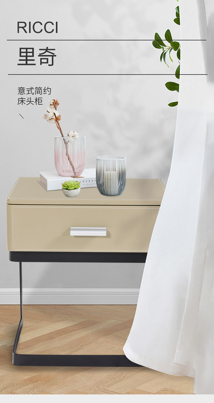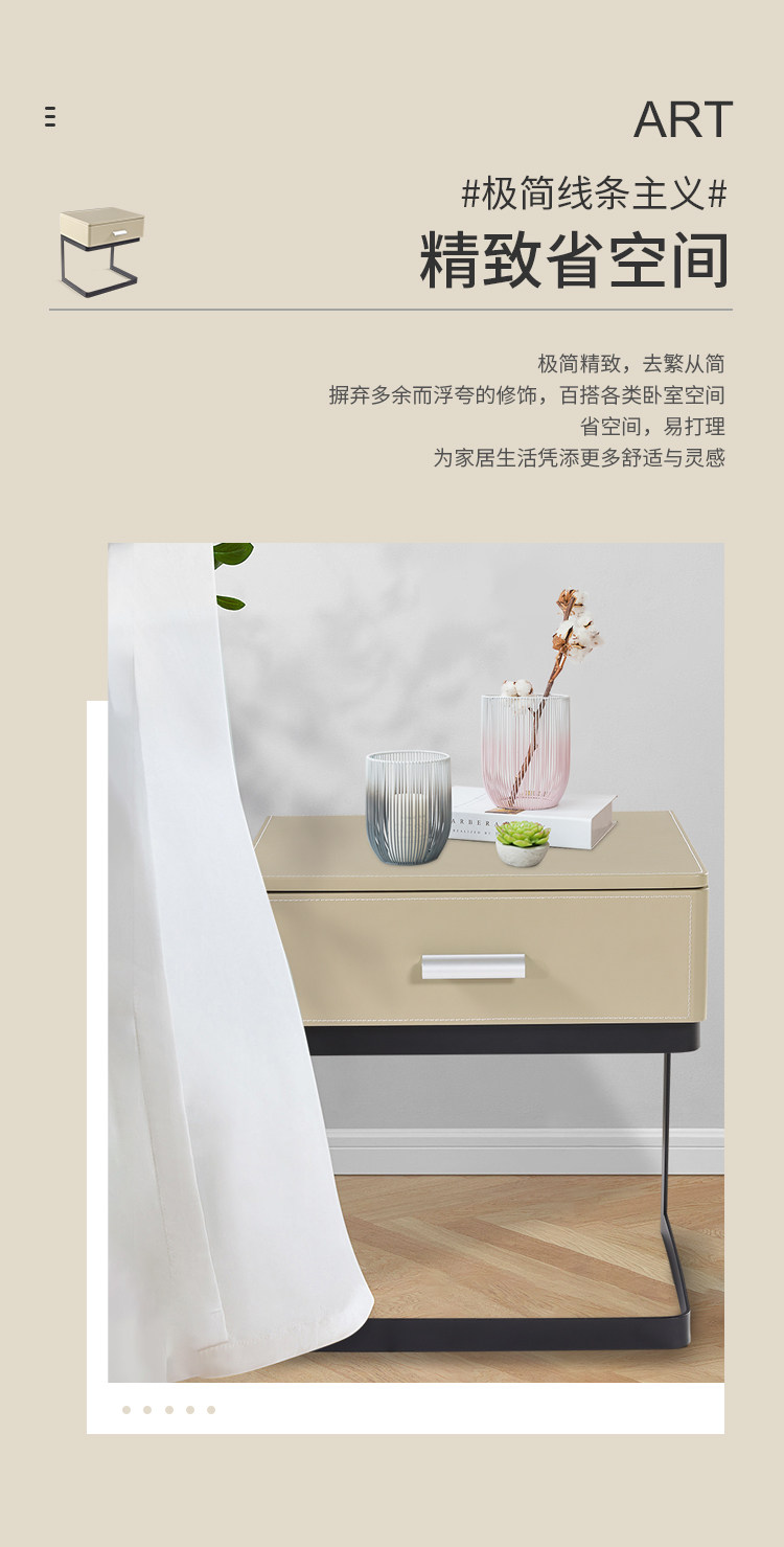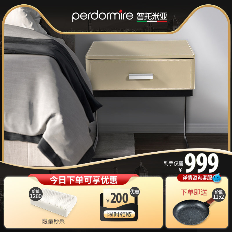 普托米亚 Итальянский минималистский кожаный прикроватный шкаф спальня Nordic Ins Modern Минималистский хранение с твердым деревом