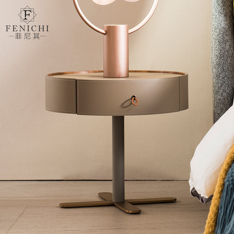 Фони его минималистский конной кожаный кожаный шкаф Современный минималистский дизайнерский дизайнерский светлый роскошный круглый кроватный шкаф