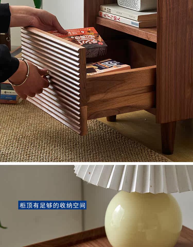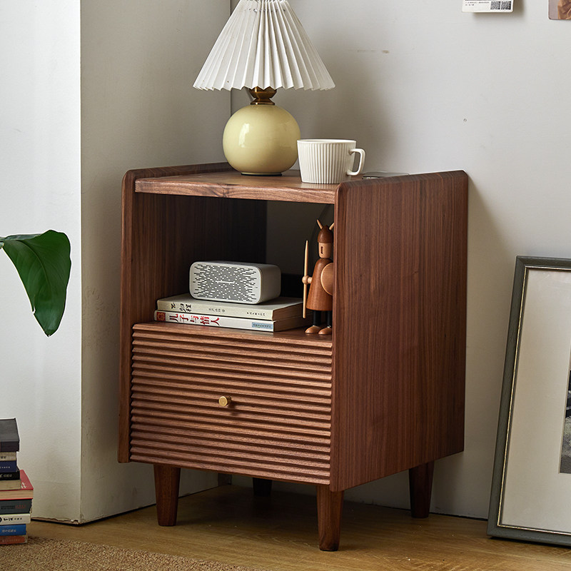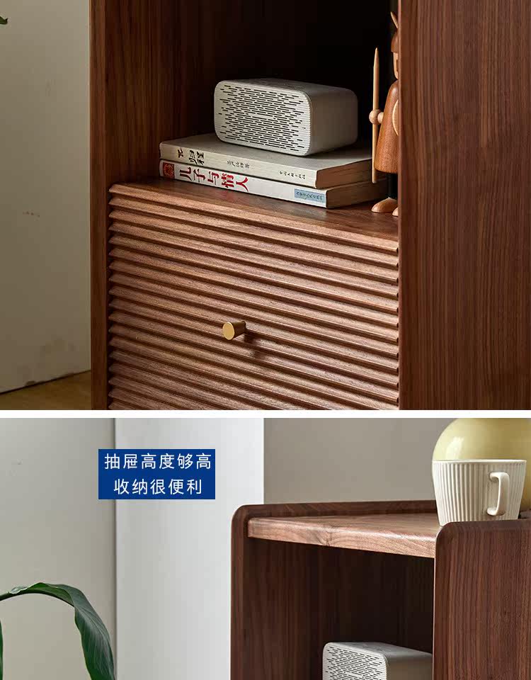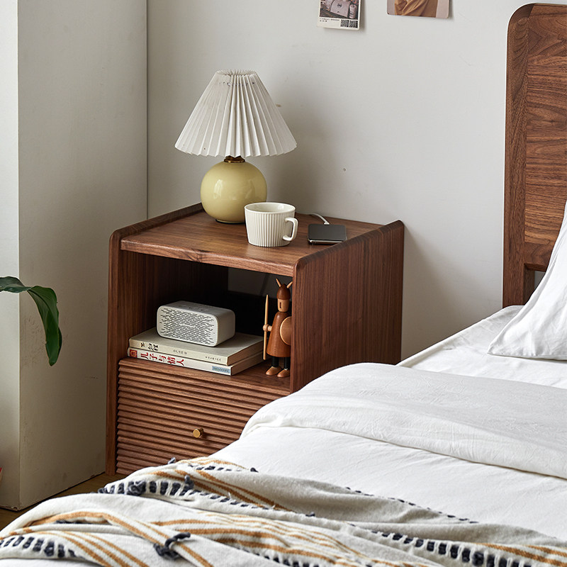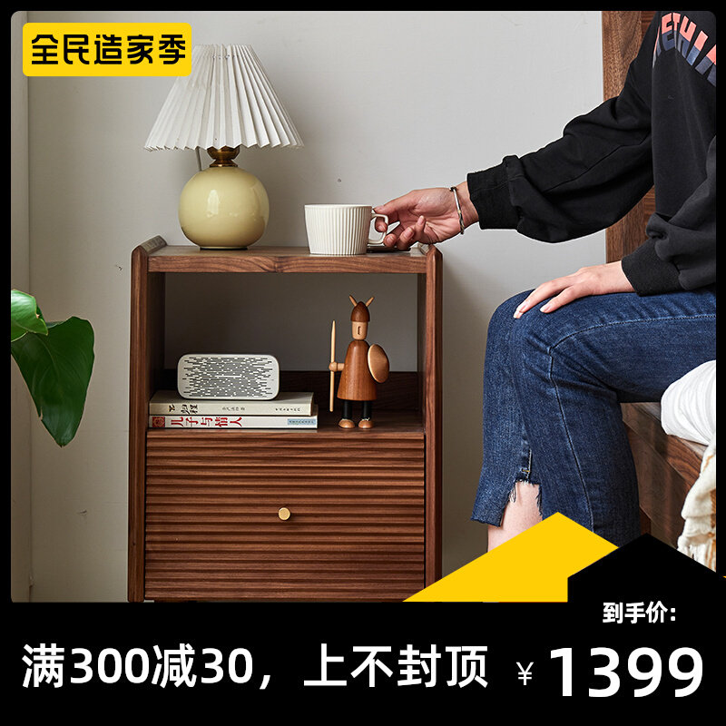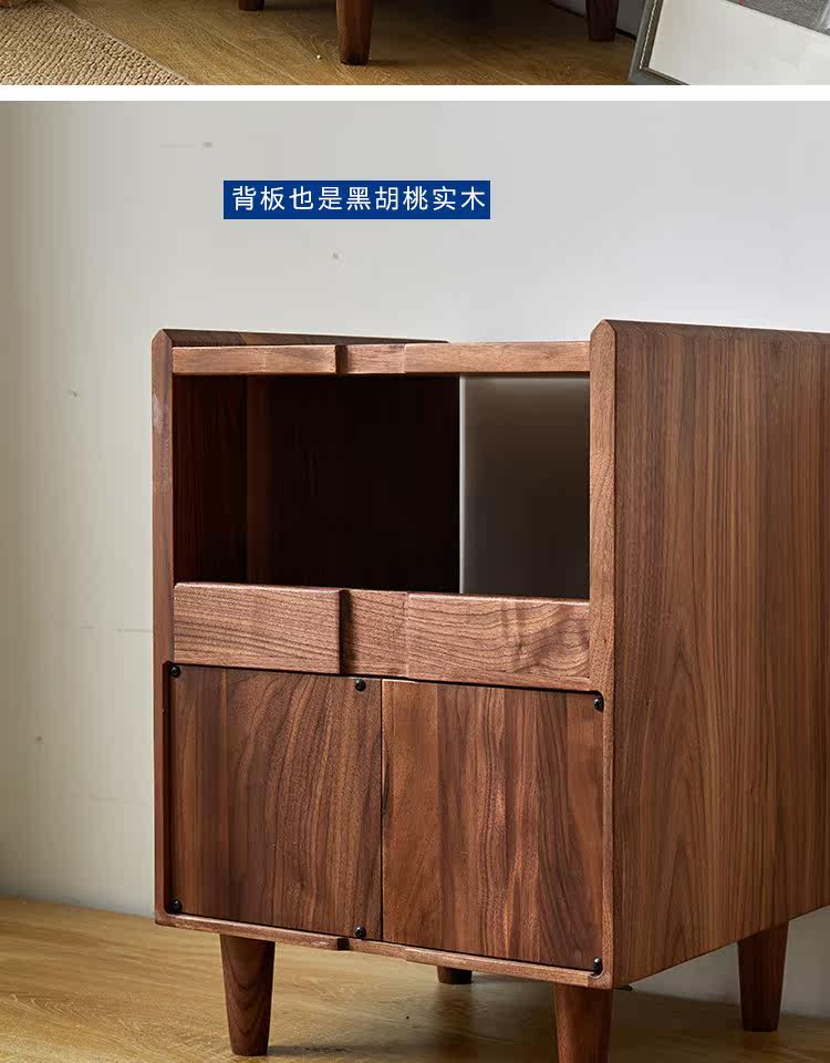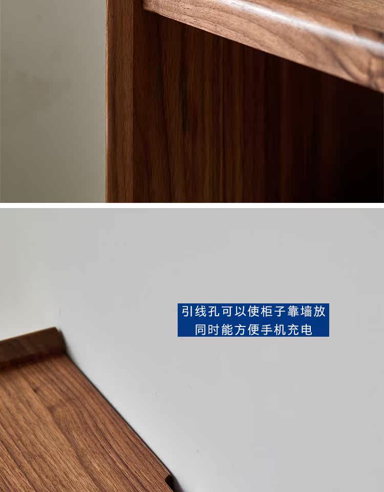 Момент черного шкафа из орехового ореха Nordic Simple Soild Wood Современный прикроватный шкаф японский стиль