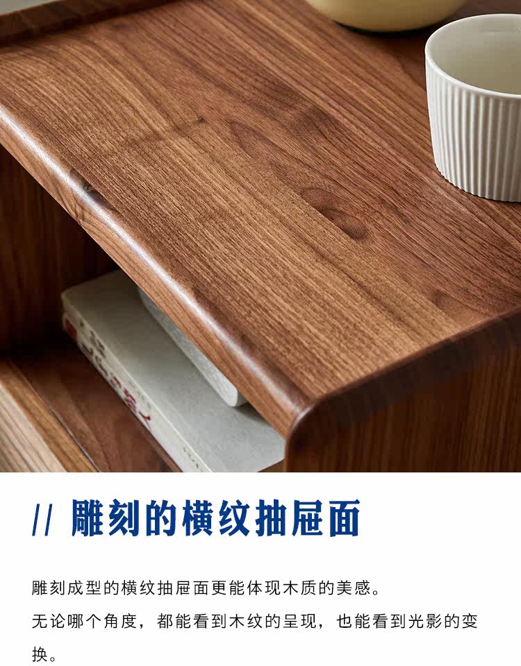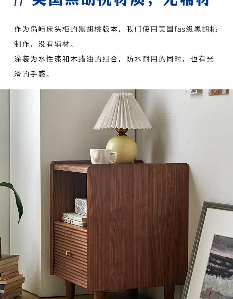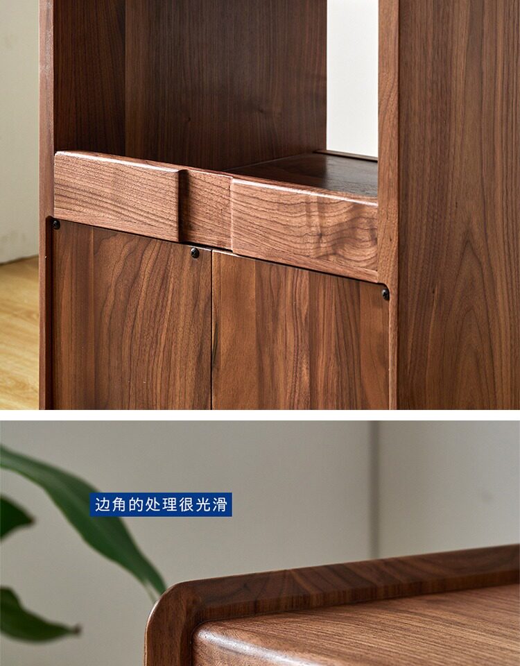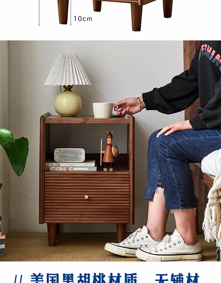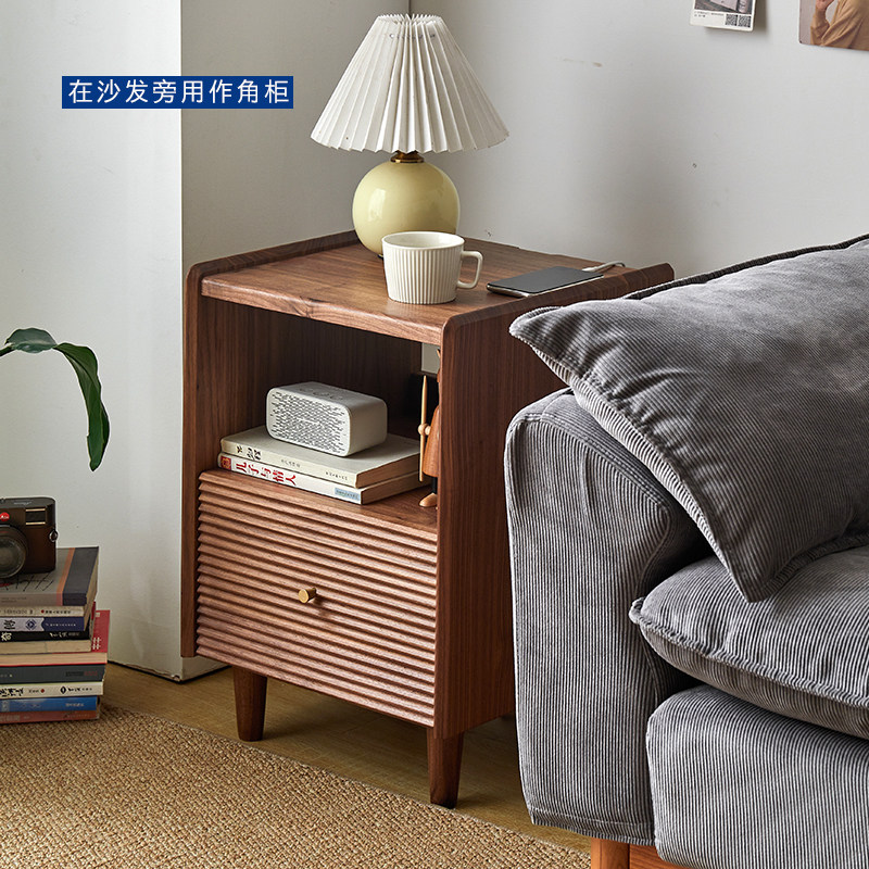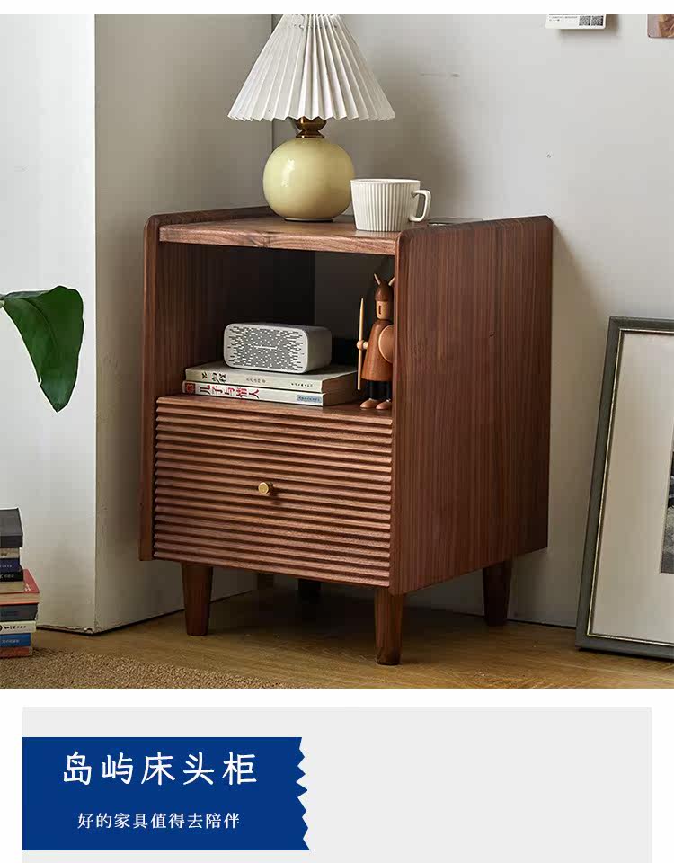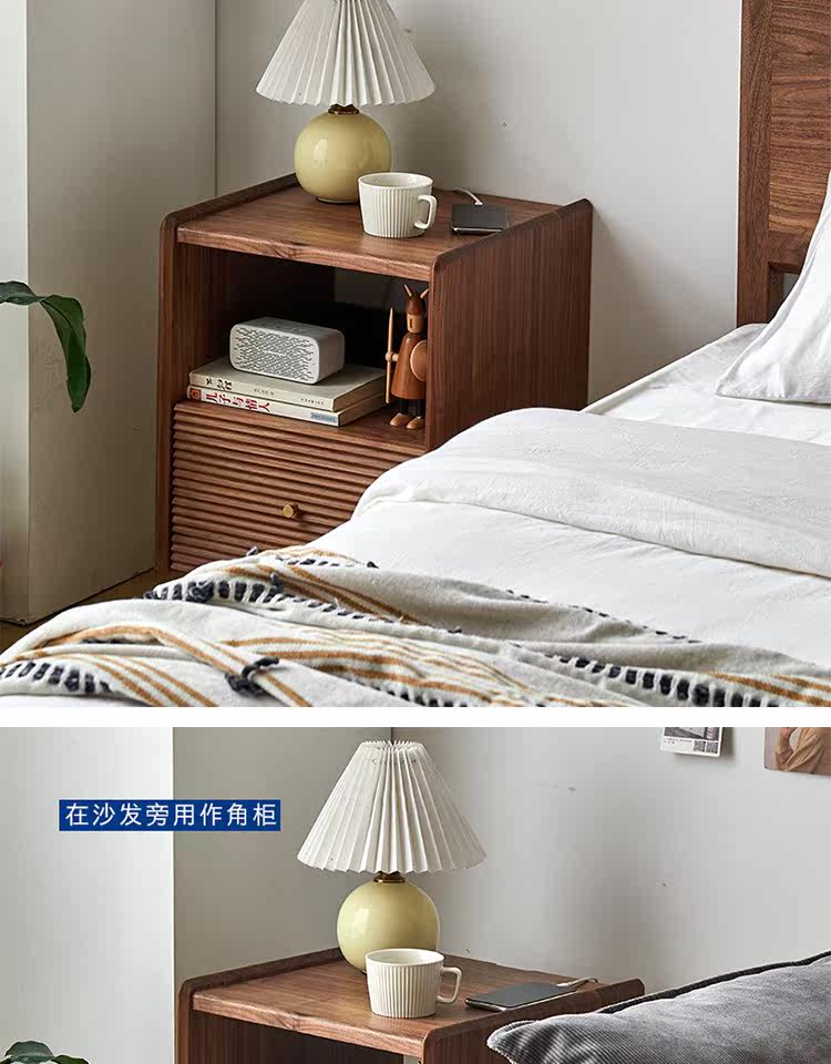 Момент черного шкафа из орехового ореха Nordic Simple Soild Wood Современный прикроватный шкаф японский стиль