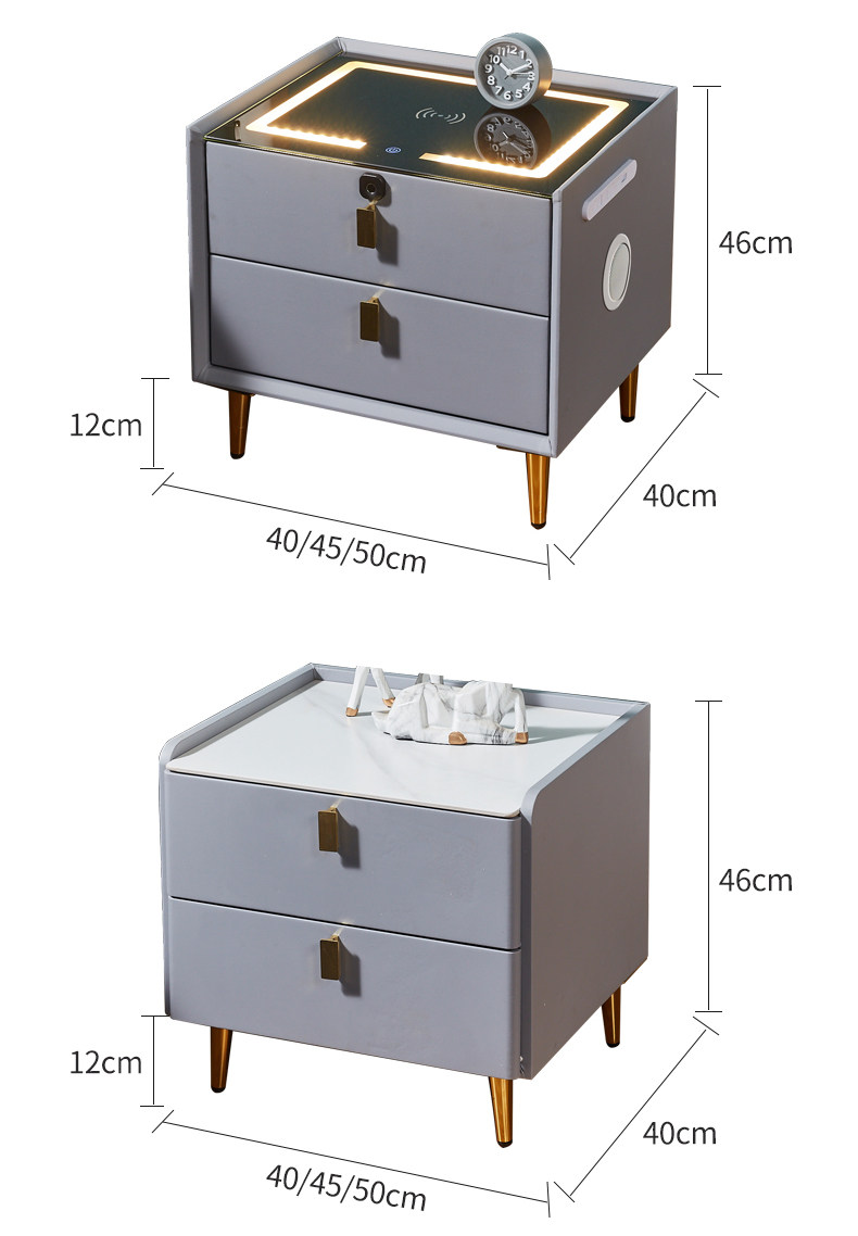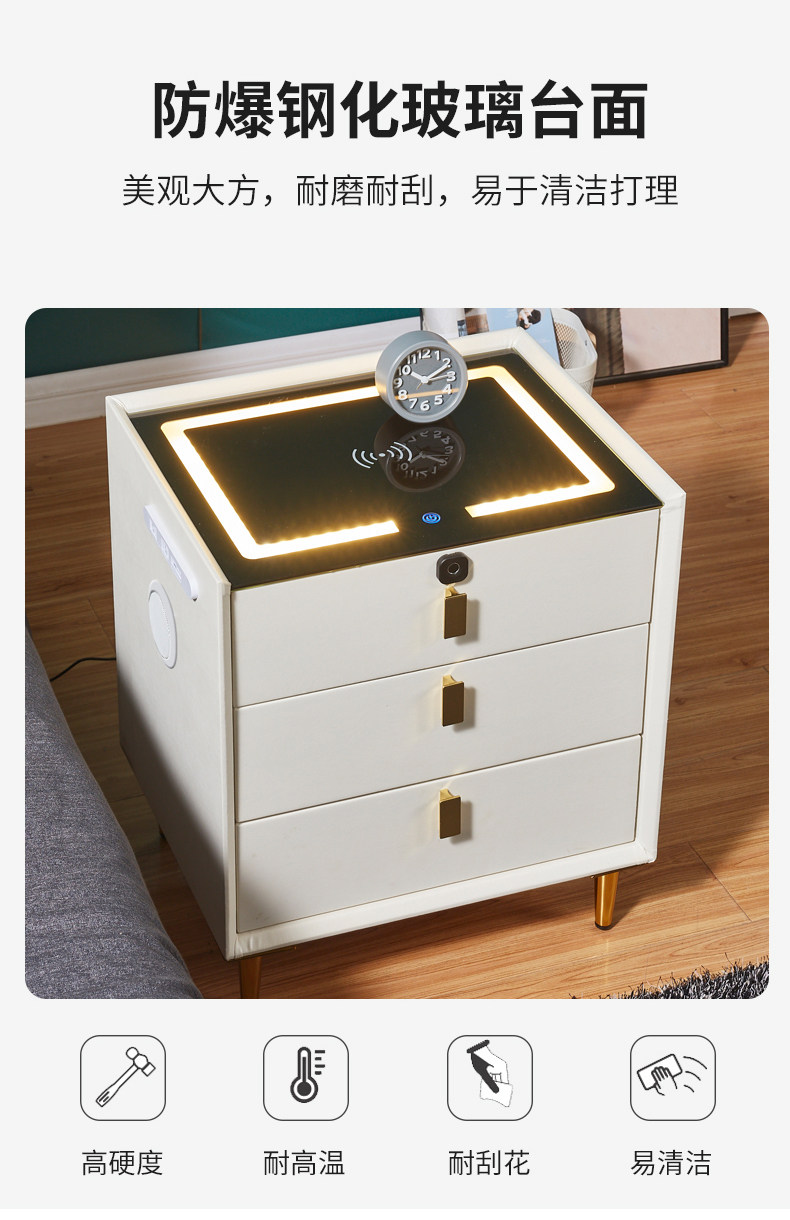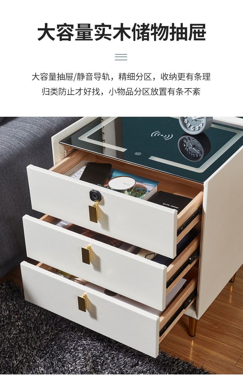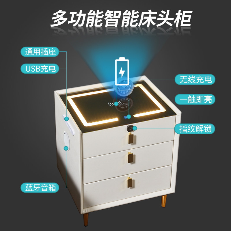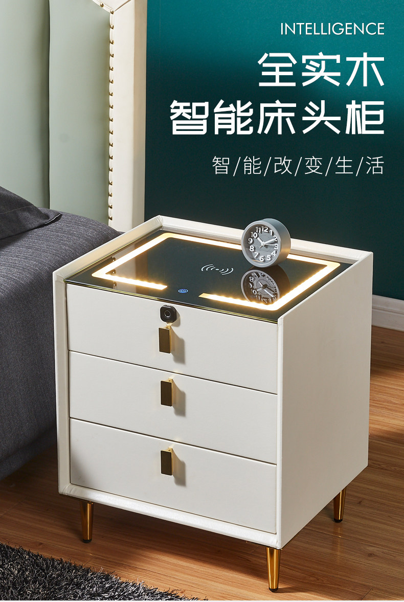 Умная прикроватная тумбочка из массива дерева, беспроводная зарядка с замком по отпечатку пальца, высокая современная простая прикроватная тумбочка со светлым динамиком Bluetooth