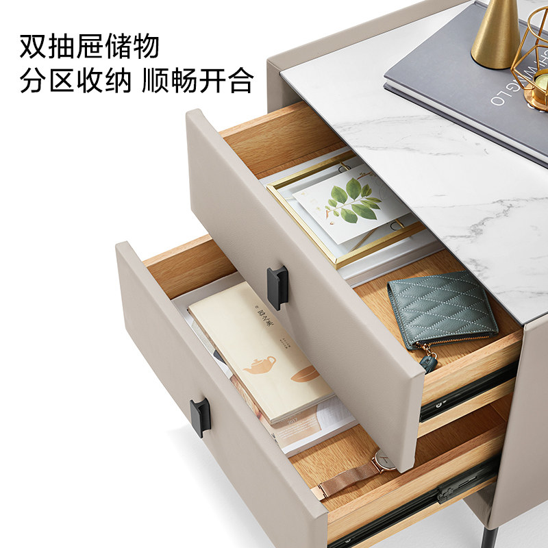 林氏家居 Высококачественная легкая роскошная прикроватная тумбочка в минималистском современном стиле для дома, спальни, новинка 2025 года, небольшая прикроватная тумбочка из шифера