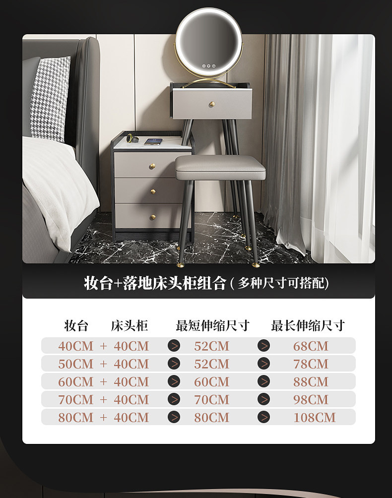 - 0,8 метра таблицы макияжа+0,35 метра прикроватное шкаф+зеркало макияжа+комбинация макияжа табуретки