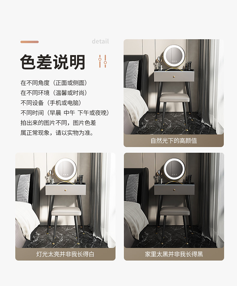 - 0,5 метра таблицы макияжа+0,25 метра постели стола+зеркало для макияжа+комбинация табуретки для макияжа