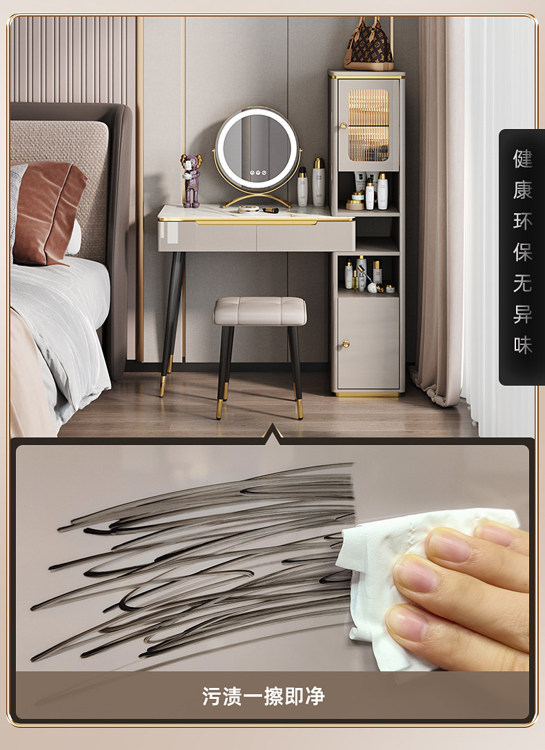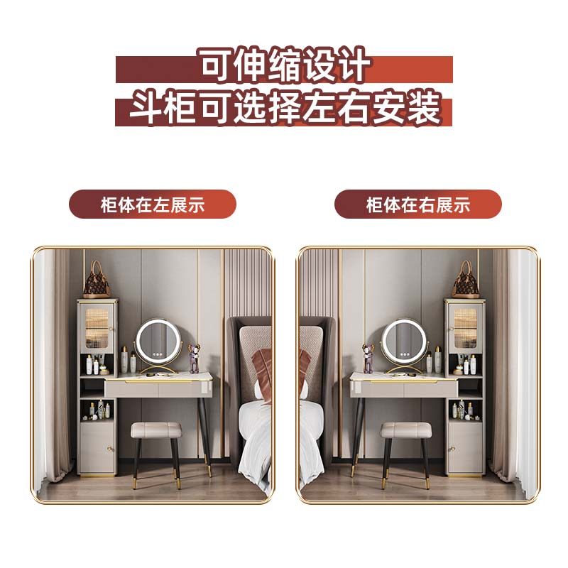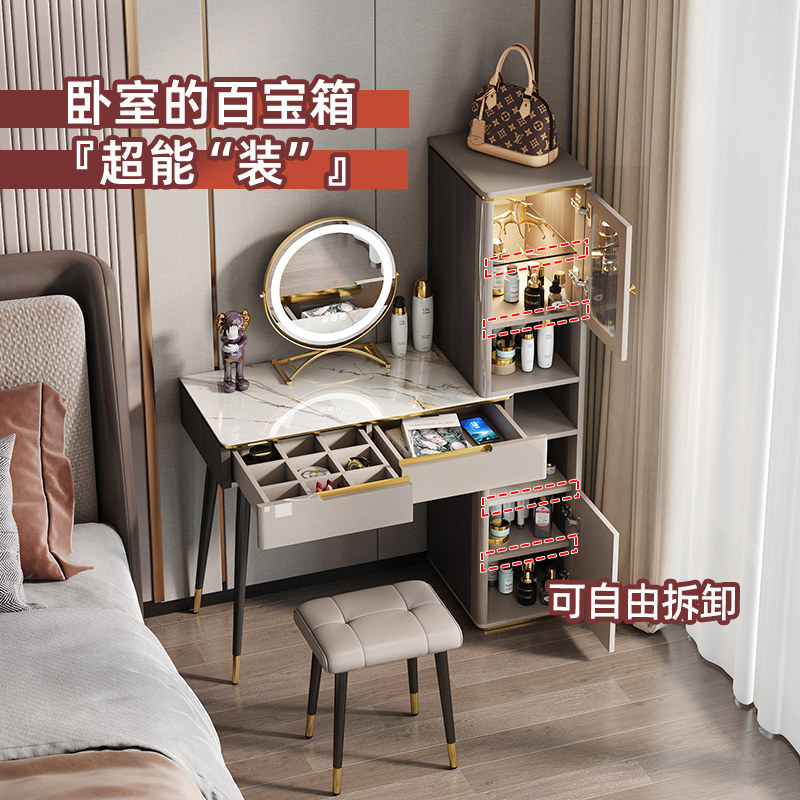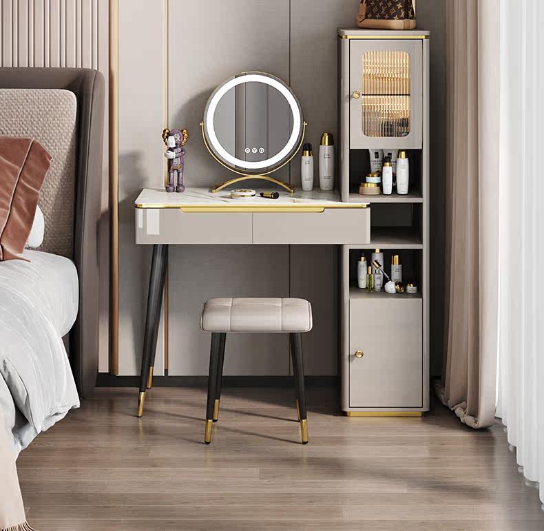 - Туалетный столик длиной 0,8 м + высокий шкаф большой вместимости + табурет для макияжа + зеркало для макияжа со светодиодной подсветкой
