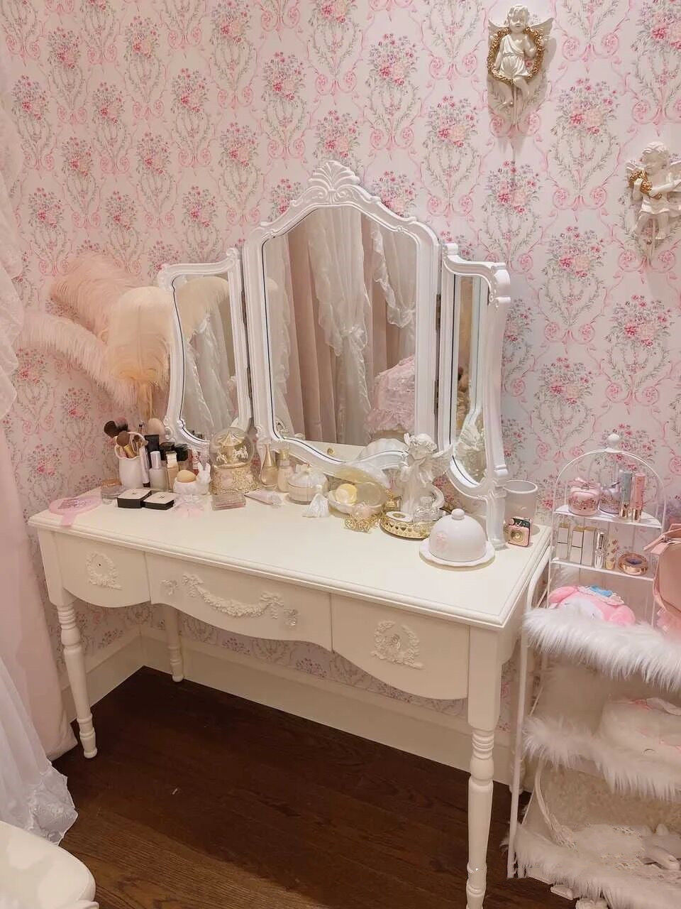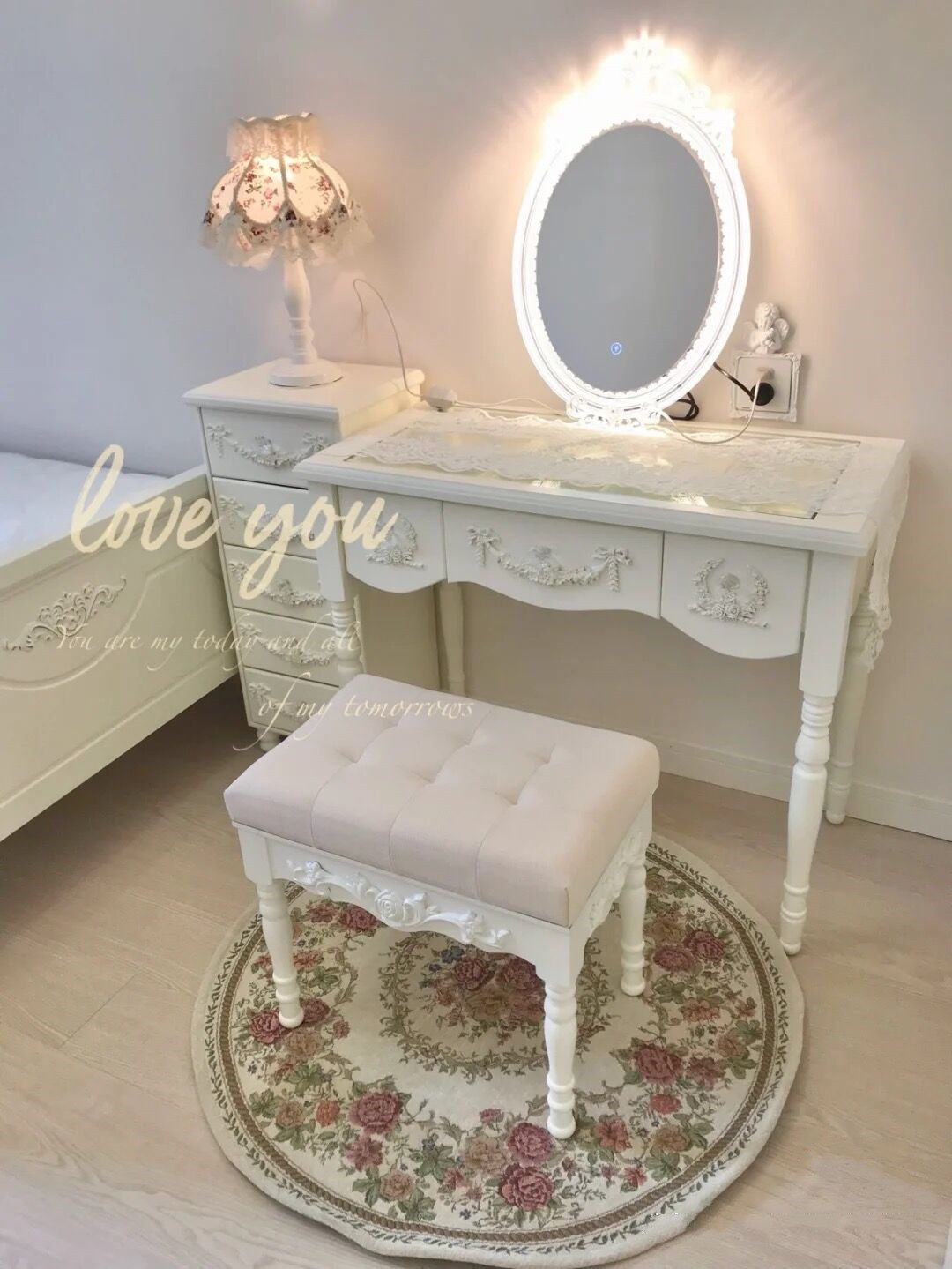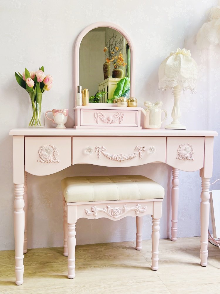 Переоборудование французское маленькое квартира Стол макияжа Европейский девочка Сердце лук резные шкаф для макияжа современный настольный стол