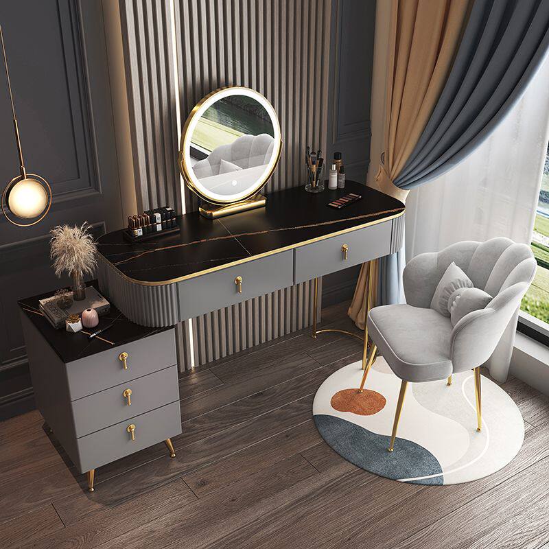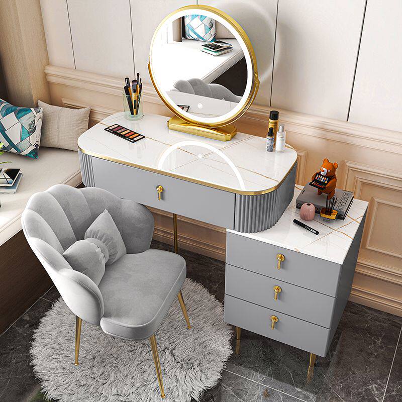 Современный и минималистичный кремовый туалетный столик для спальни из натурального дерева