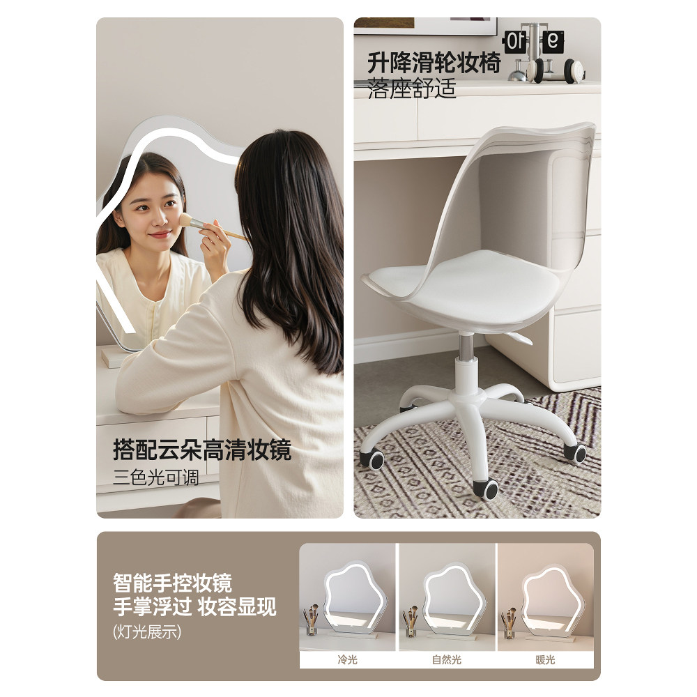 Туалетный столик из цельного дерева, окрашенный в кремовый стиль, шкаф-ведро для спальни, современный простой туалетный столик в новом стиле 2025 года, встроенный туалетный столик