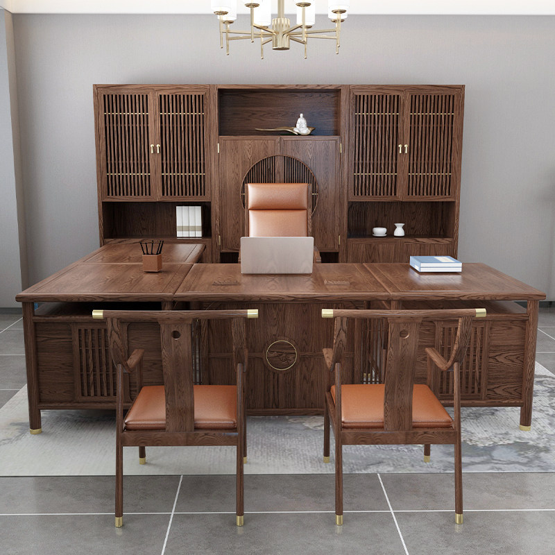 Стол нового китайского стиля, стул, стул Комбинированный твердый древесный стол, владелец стола, менеджер по столу, стол, стол, столовая офисная мебель