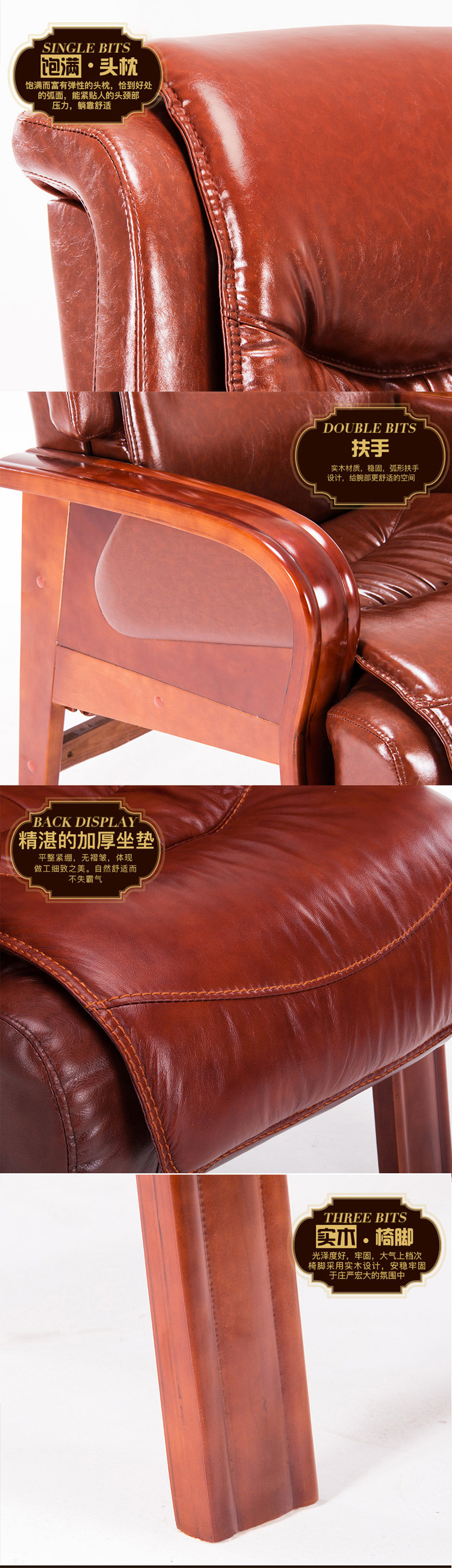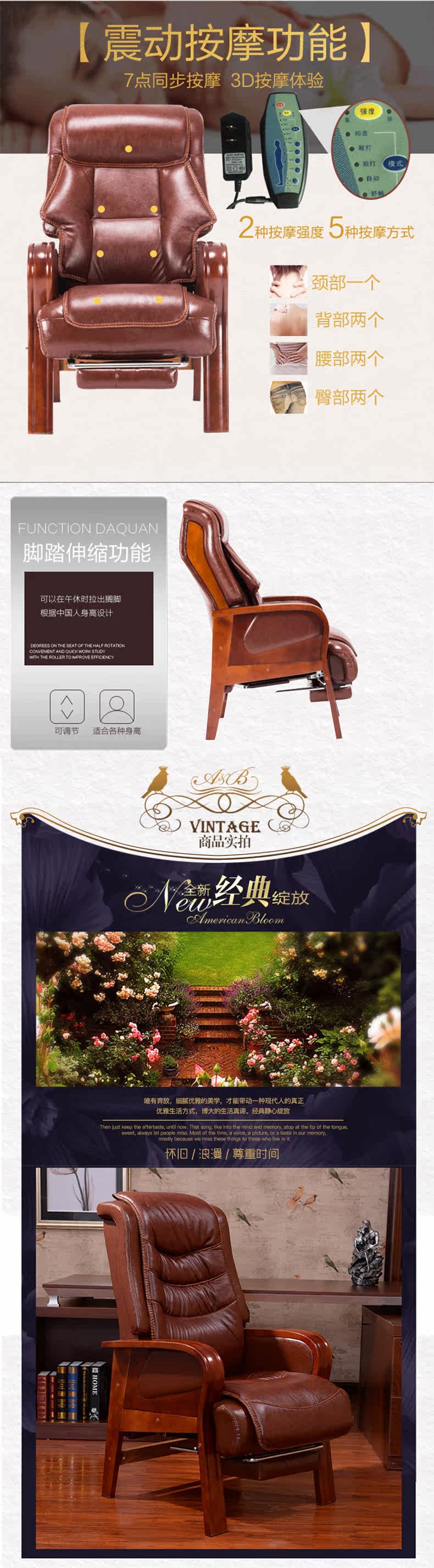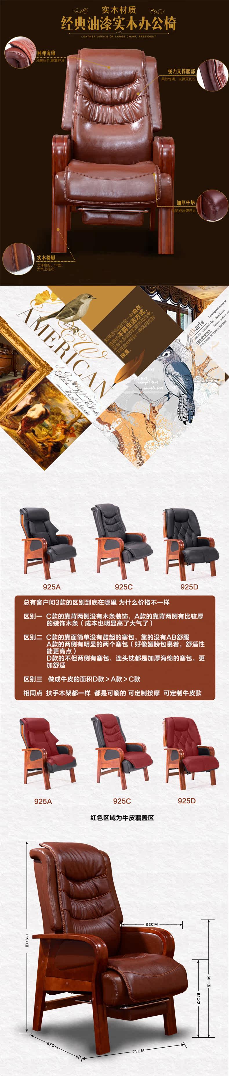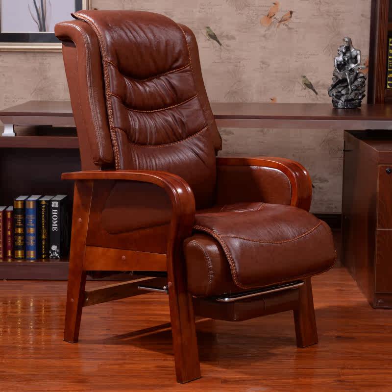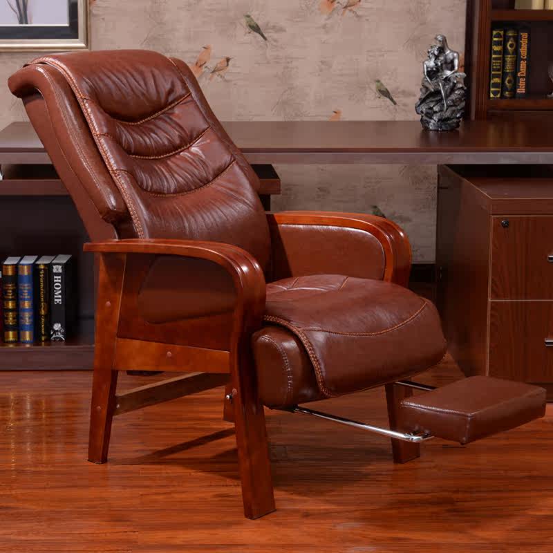 Четырехболотые сплошные деревянные дома кожаные стул Стул Стул Стул Массаж может лежать на компьютерном кресле Cowhide Big Chair Presest Sware