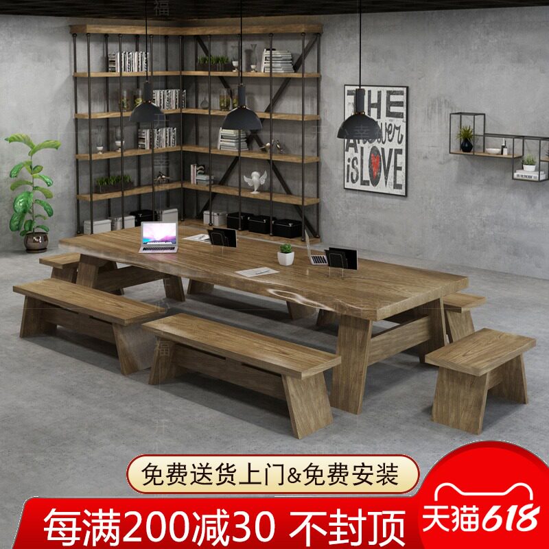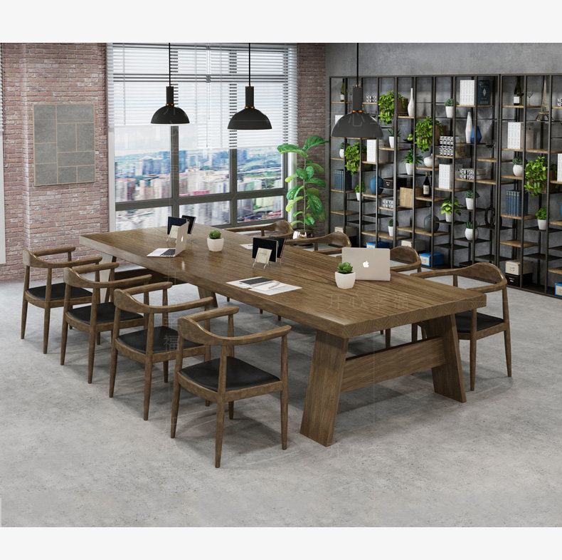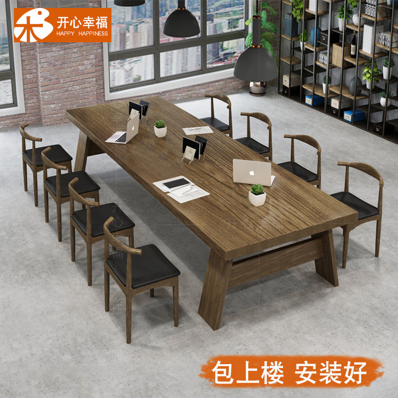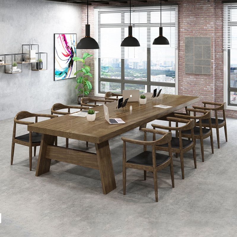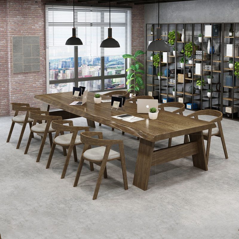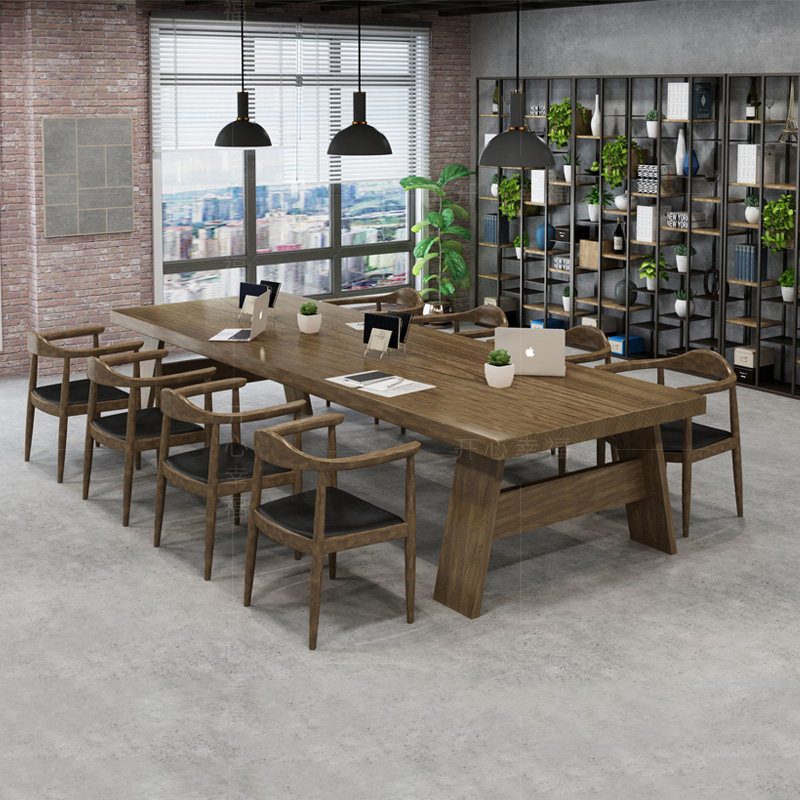 Северная крупномасштабная конференция с твердым древесиной Главный стол промышленные ветры Оригинальный деревянный длинная полоса компьютерное офис переговоры об обеденном столе и комбинации стула