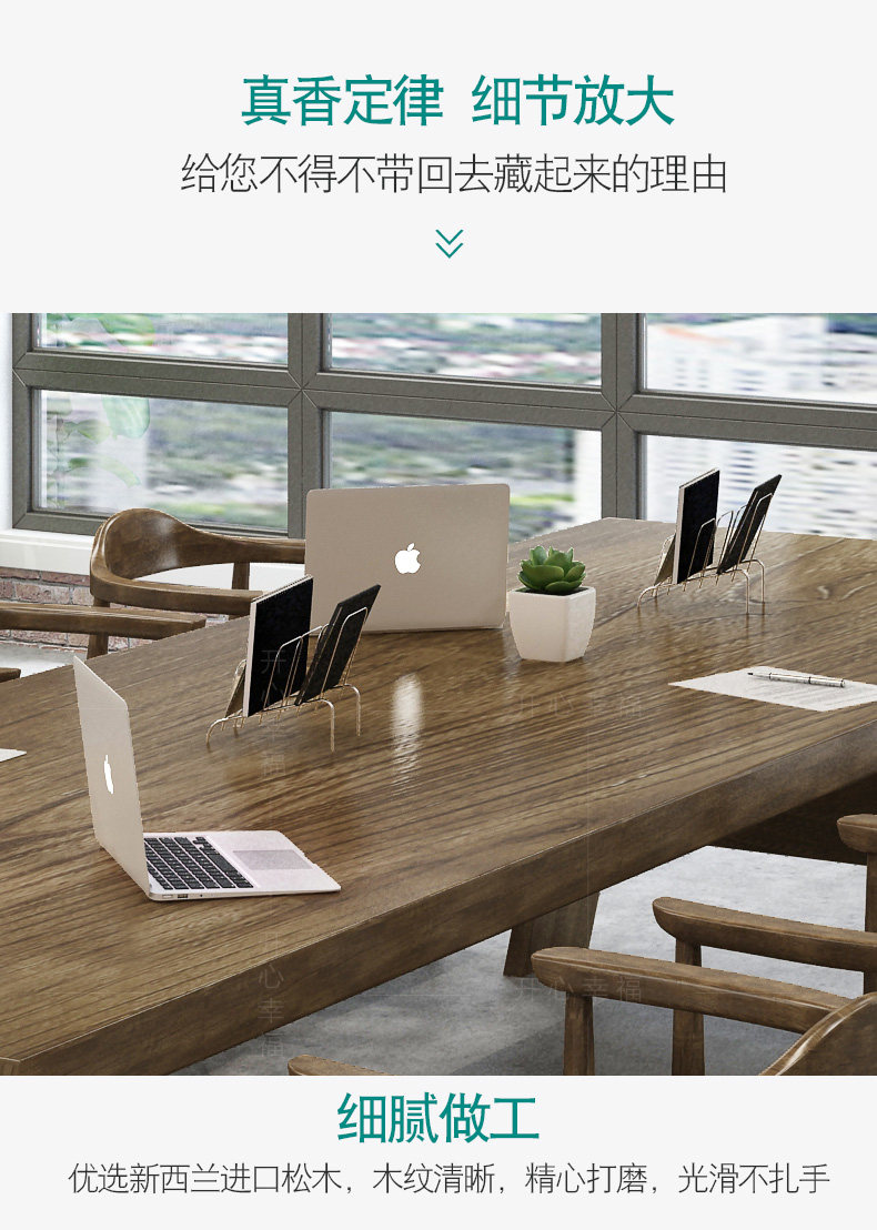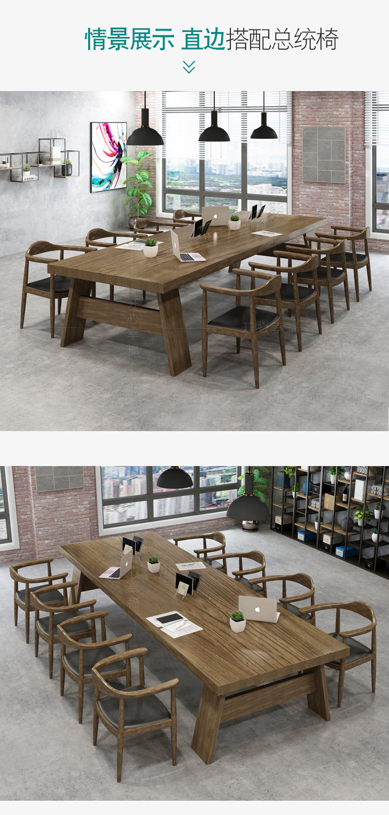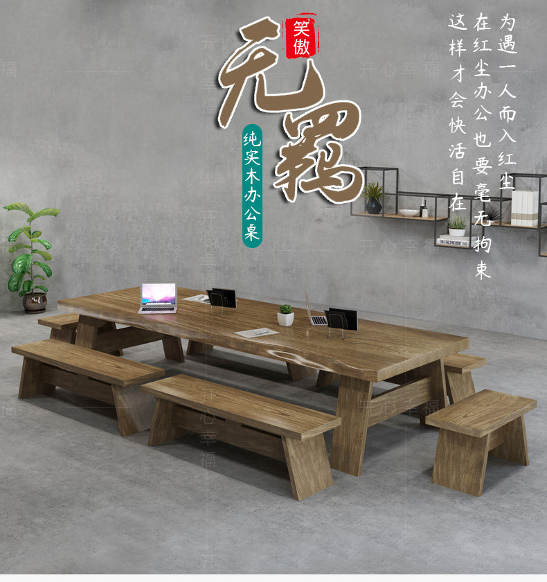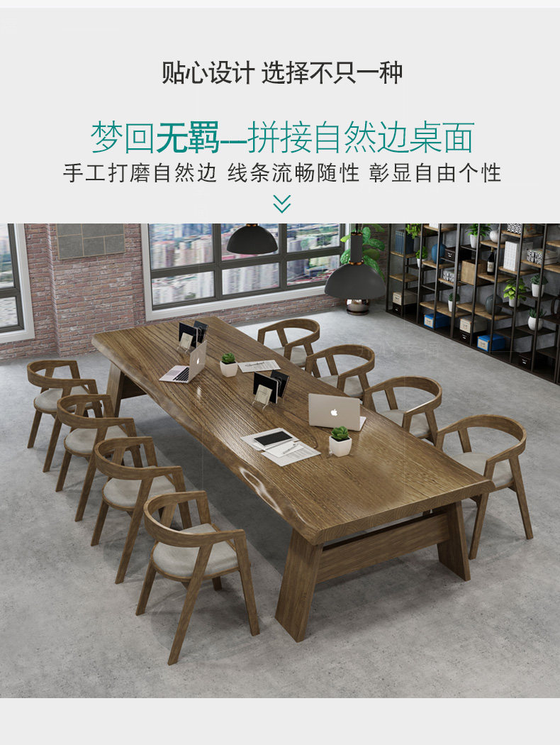 Северная крупномасштабная конференция с твердым древесиной Главный стол промышленные ветры Оригинальный деревянный длинная полоса компьютерное офис переговоры об обеденном столе и комбинации стула