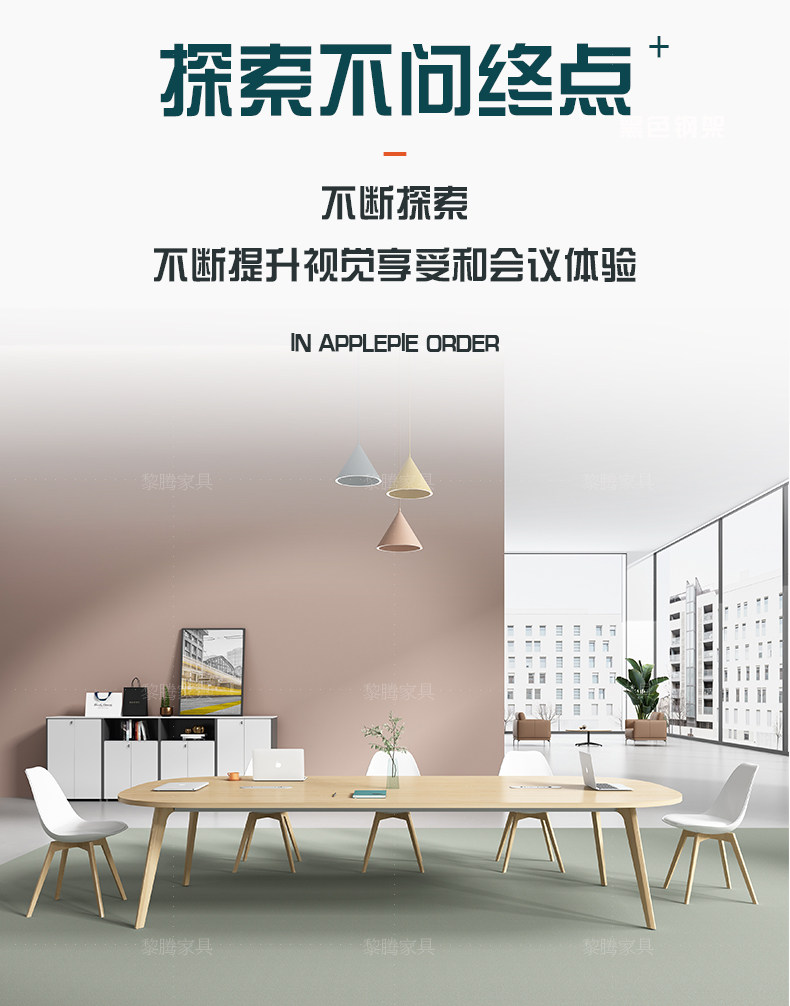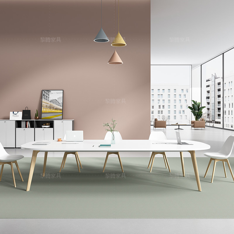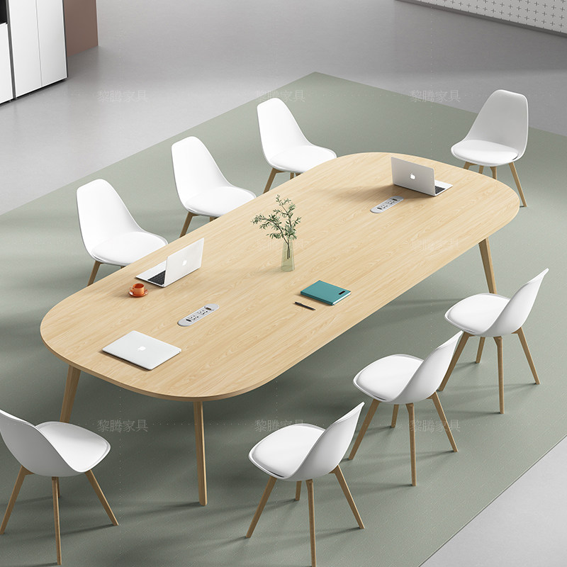 Твердое дерево ноги, гетерогенный творческий стол для конференции длинное стол, простой современный малый тренинг для чтения и комбинация стула