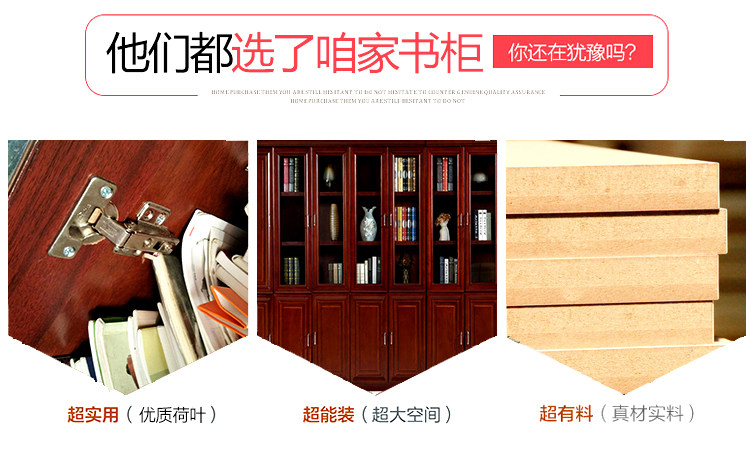 - Книжный шкаф с тремя воротами 【Кожаная древесная кожаная красный wutao】
