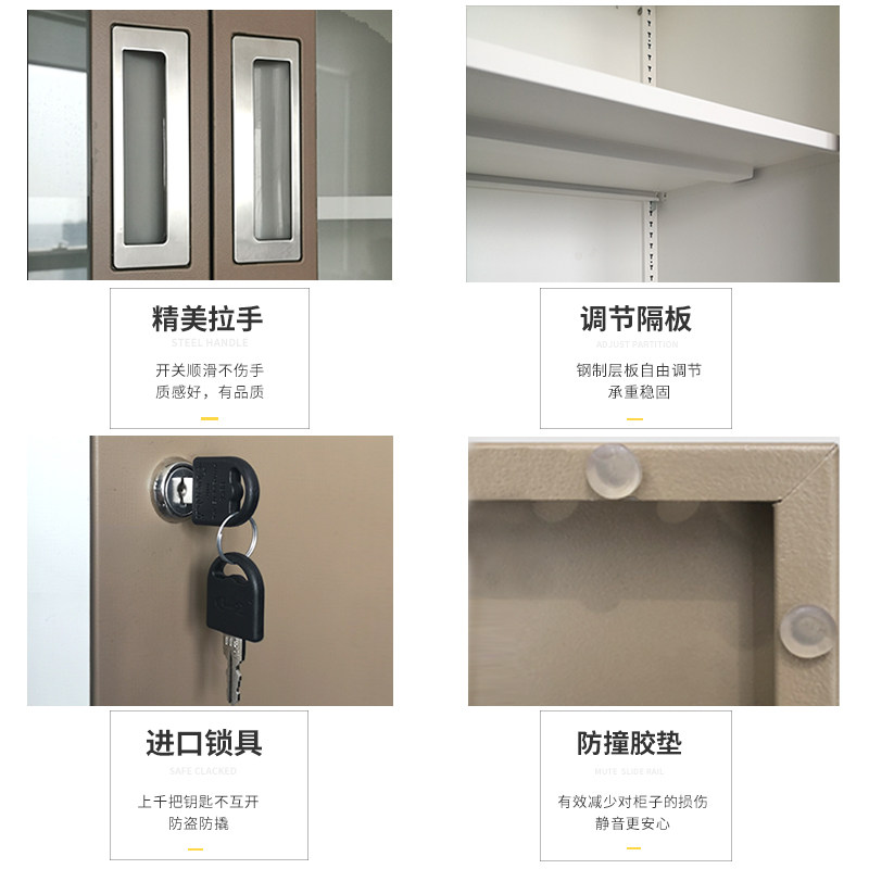 1090 High -Glass Slisting Door File Cabinet Железный кожаный шкаф офисный шкаф архив шкаф