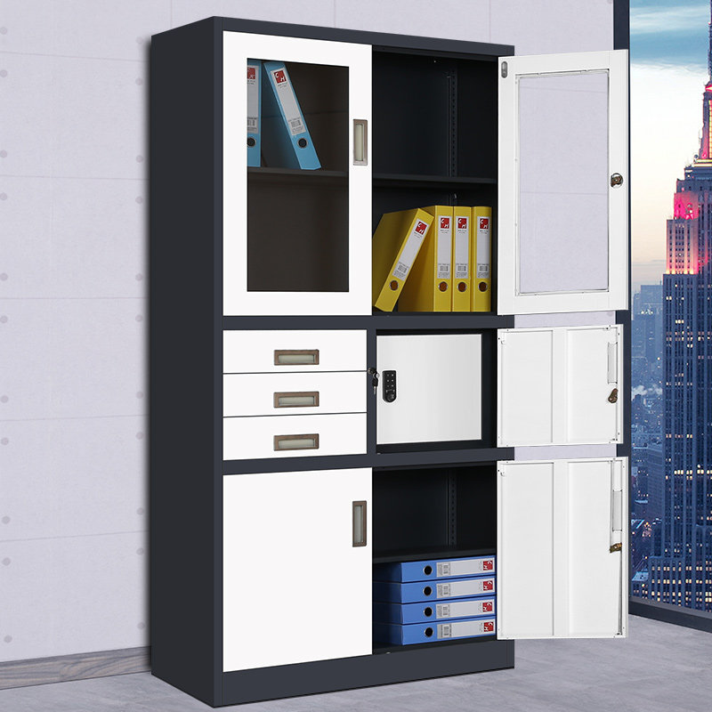 Установите цвет офисного файла, шкаф, железная кожаная шкаф, стеклянная дверь с блокировкой файл шкафа данных внутри Safe
