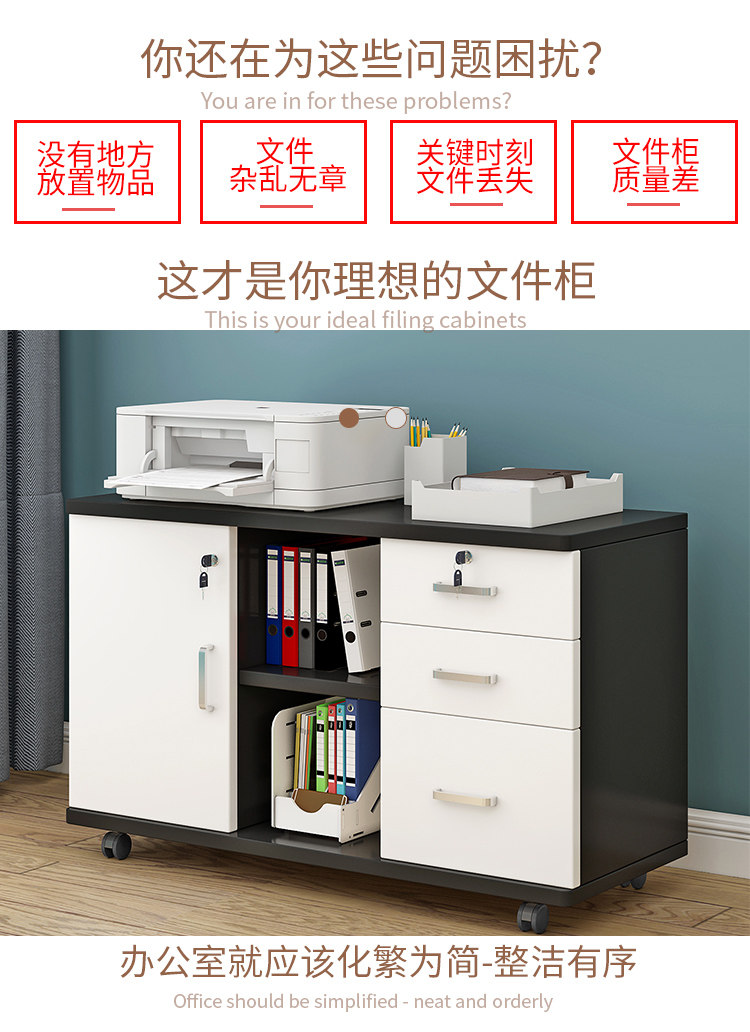 Офисный деревянный файл файловый шкаф с шкафчиком для хранения блокировки, мобильный низкий шкаф для рабочего стола -Стильский шкаф