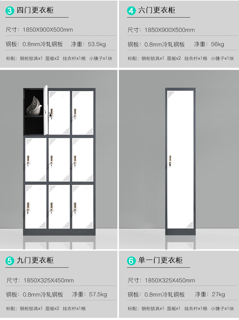 Серо -белый оловянный -Wardrobe High -End работники работники общежития много -дековые дверные водохранилища тренажерный зал.